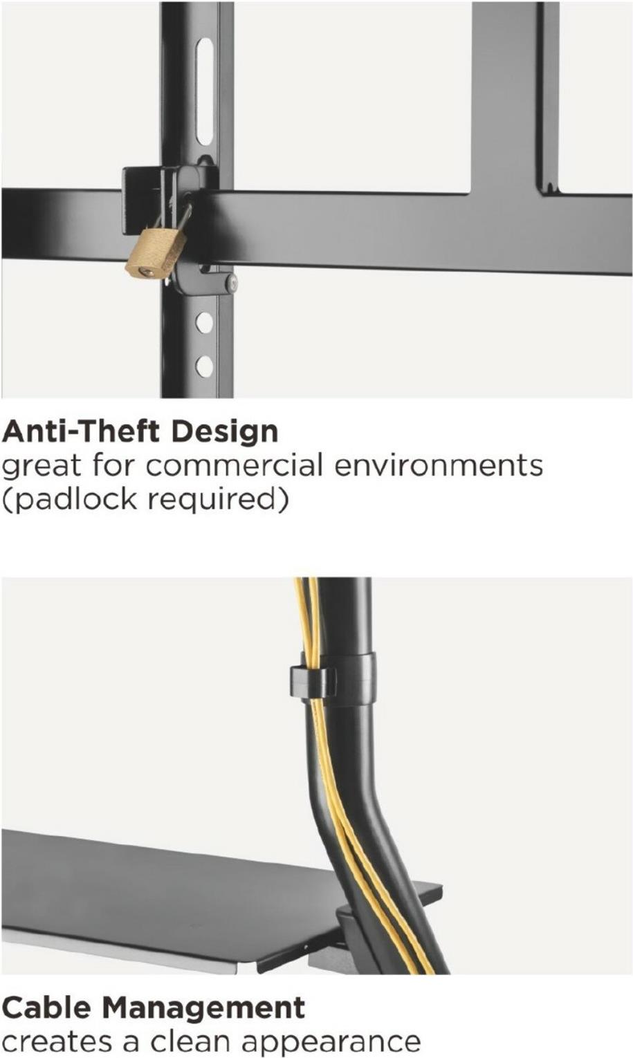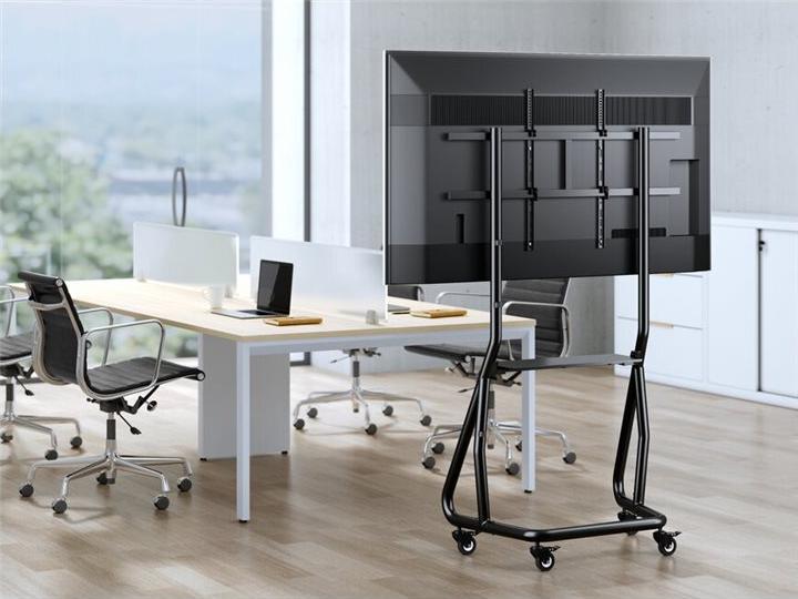 Der robuste TV-Wagen 650609 mit stilvollem, technischem und funktionalem Design bietet eine solide Präsentationslösung für die meisten 60-105-Zoll-LED-LCD-Flachbildfernseher mit einer Tragfähigkeit von bis zu 100 kg.Für eine optimale Betrachtungsposition höhenverstellbar, die Geräteablage bietet mehr Stauraum für Zubehör. Diebstahlsicheres Verriegelungsloch für zusätzliche Sicherheit, das ein unbeabsichtigtes Entfernen verhindert (zusätzliches Vorhängeschloss erforderlich).Feststellbare Rollen erleichtern das Bewegen und Anhalten von TV-Wagen. Das interne Kabelmanagement verbirgt Kabel vor dem Blick und sorgt so für ein aufgeräumtes Erscheinungsbild. Ideal für Konferenzen, öffentliche Präsentationen oder andere professionelle Präsentationen.