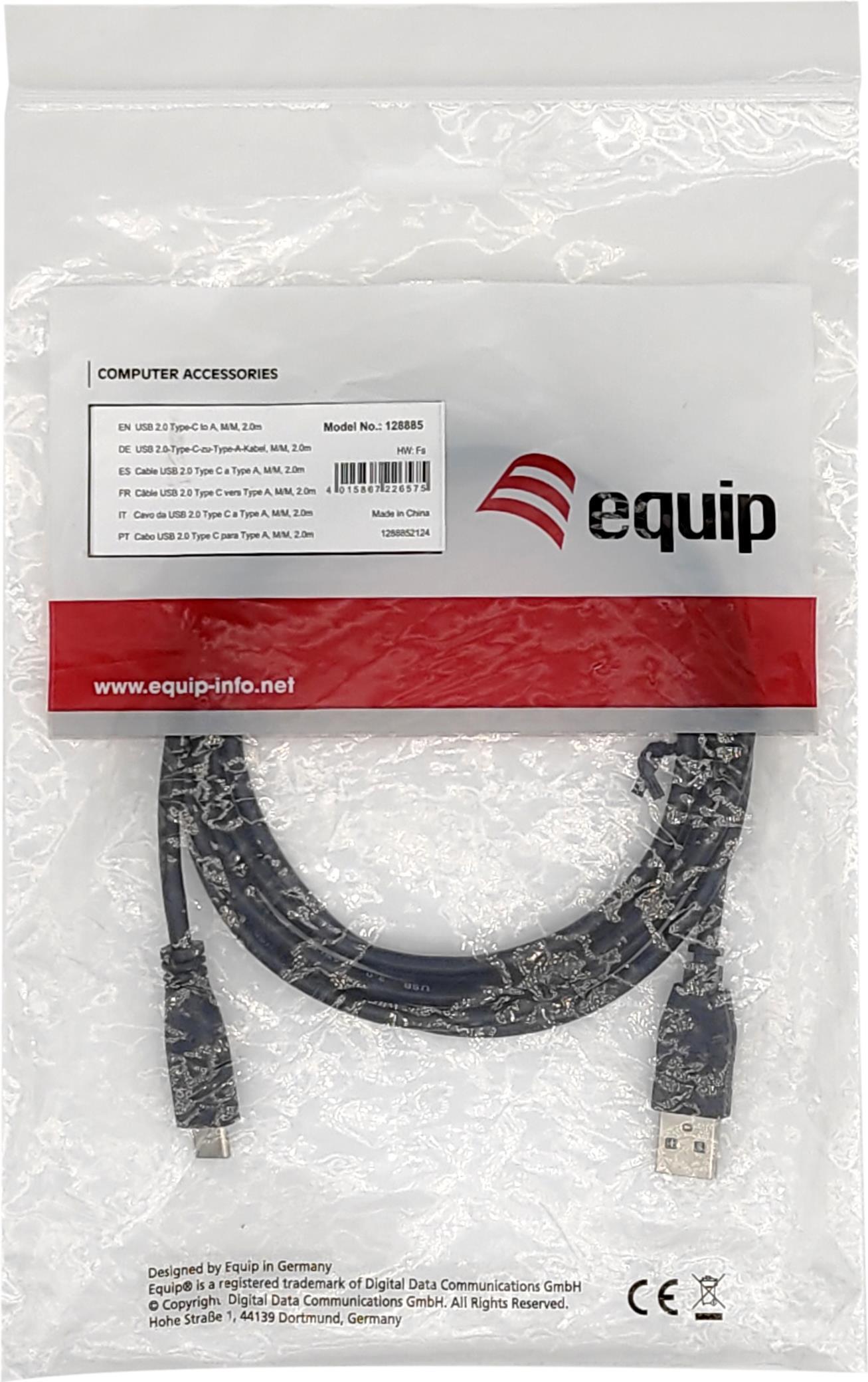 Equip USB 2.0 Typ C auf Typ A Kabel - M/M - 2.0 m - 2 m - USB A - USB C - USB 2.0 - 480 Mbit/s - Schwarz (128885)