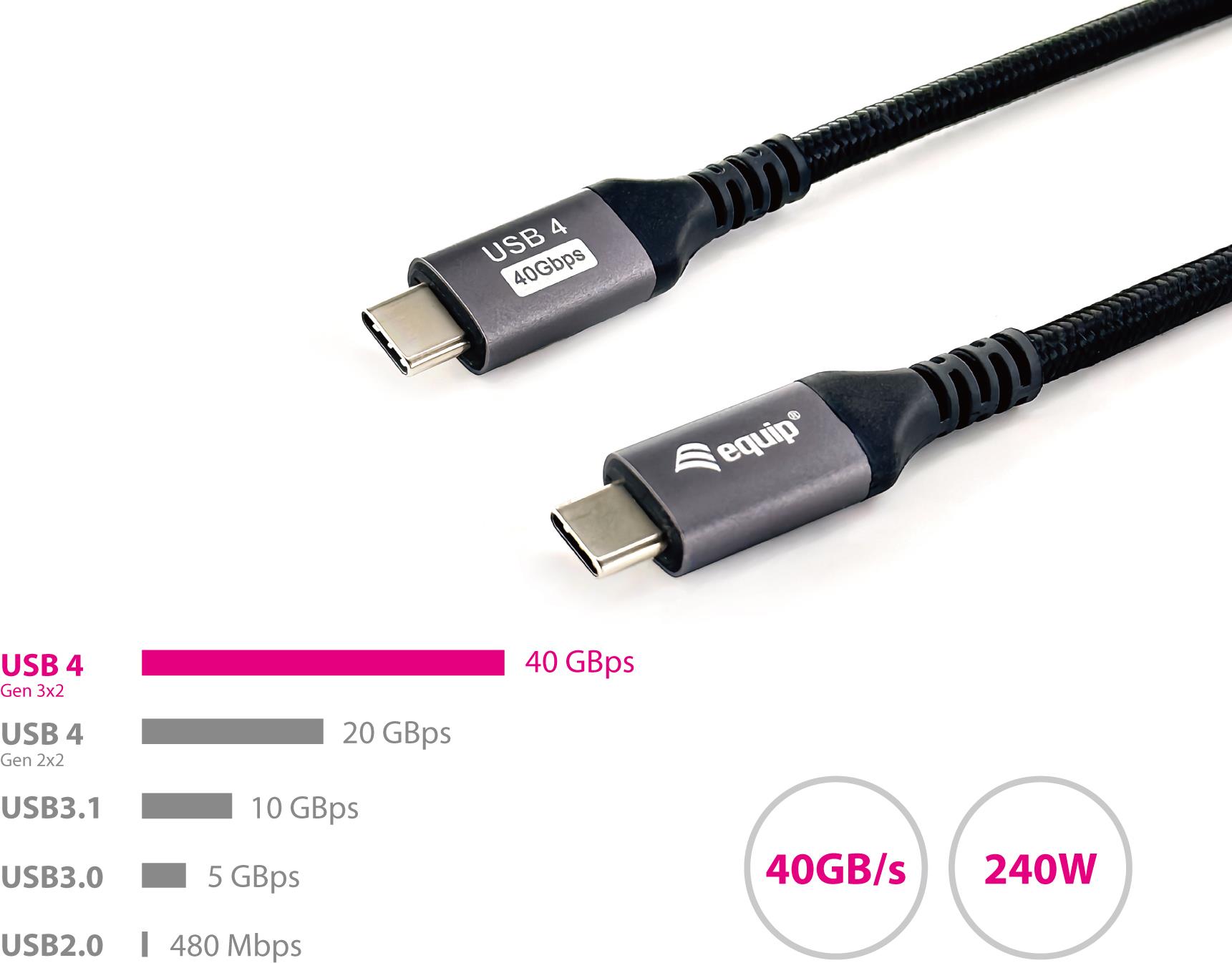 Equip USB 4 Gen 3 C zu C Kabel - M/M - 2,0 m - PD3.1 240W - 8K/60Hz - 40 Gbps - Schwarz (128383)