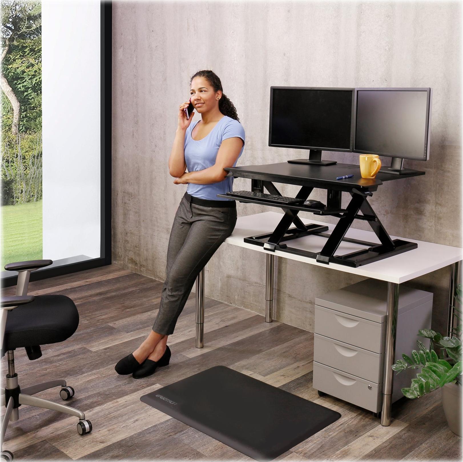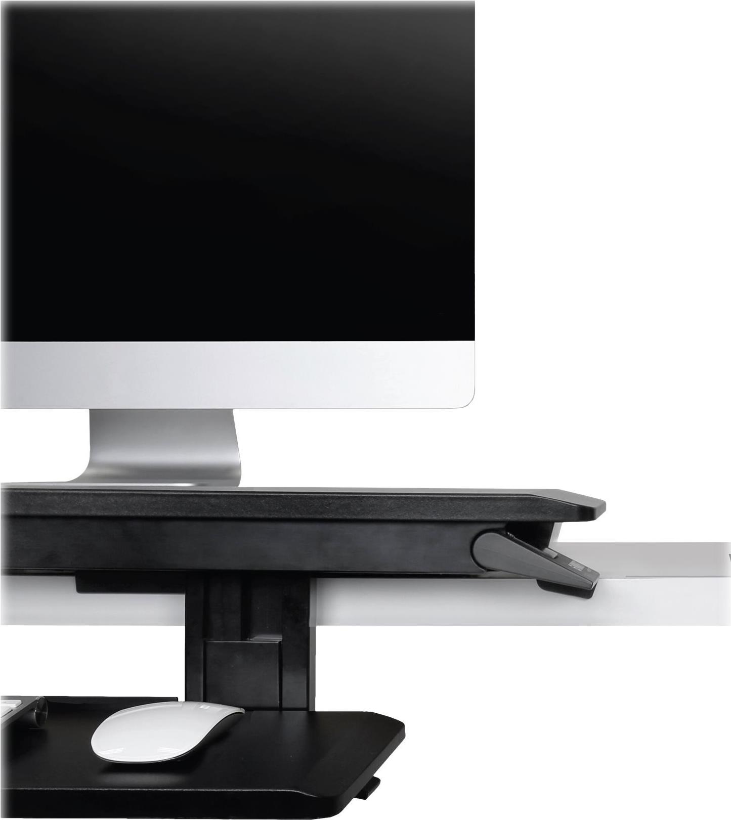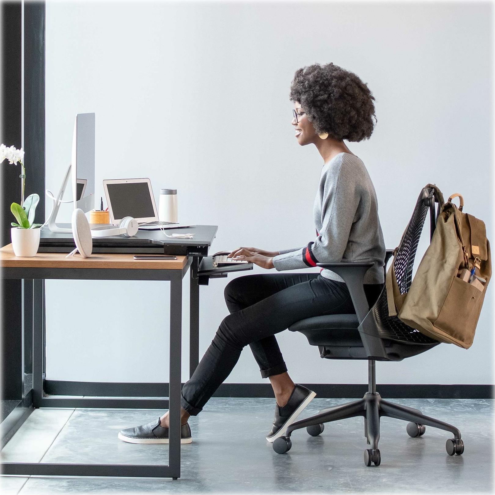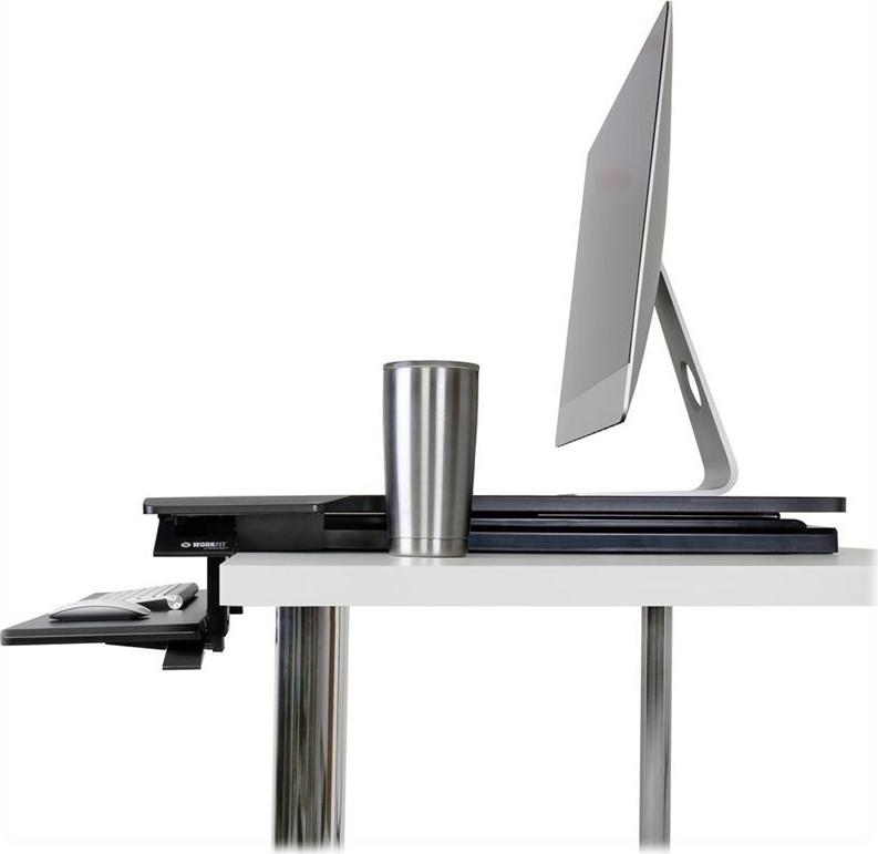 Mit den X-förmigen Hebebügeln ist dieser verstellbare WorkFit Steh-Schreibtisch für mehr Benutzer passend, lässt sich zum Schreibtisch hin zusammenklappen, und hält den richtigen Abstand zwischen Monitor und Tastatur bei. Dank einer höhenverstellbaren, zurückklappbaren Tastatur, die sich unter der Arbeitsfläche befindet, bietet dieser extrem flache Sitz-Steh-Arbeitsplatz einzigartige Ergonomie im Sitzen wie im Stehen.