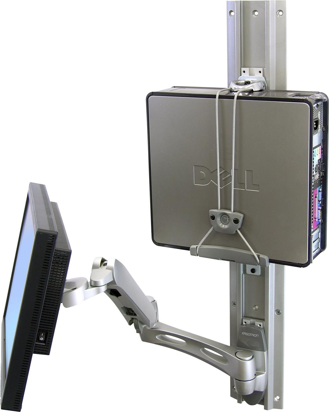 Dieser Halterung befestigt Computer auf einer Vielzahl von Oberflächen: direkt an der Wand, unter einem Schreibtisch, an Pfosten oder Ergotron Wall Tracks und Command Posts. Das Design dieser Einheit ist attraktiv und offen, Ihr System läuft auch bei langen Betriebszeiten nicht heiß. Die besondere Sicherheitsbefestigung schützt vor Diebstahl.