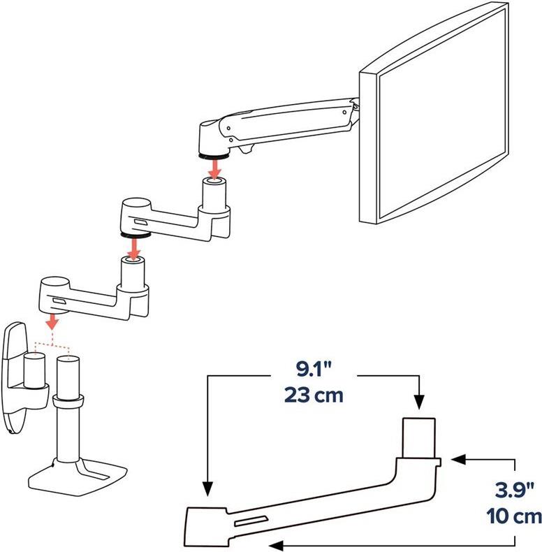 Ergotron - Montagekomponente (9" Verlängerungsarm) - Aluminium - weiß - für P/N: 45-241-026, 45-243-026, 45-246-026, 45-268-026, 45-269-009, 45-295-026, 45-551-216