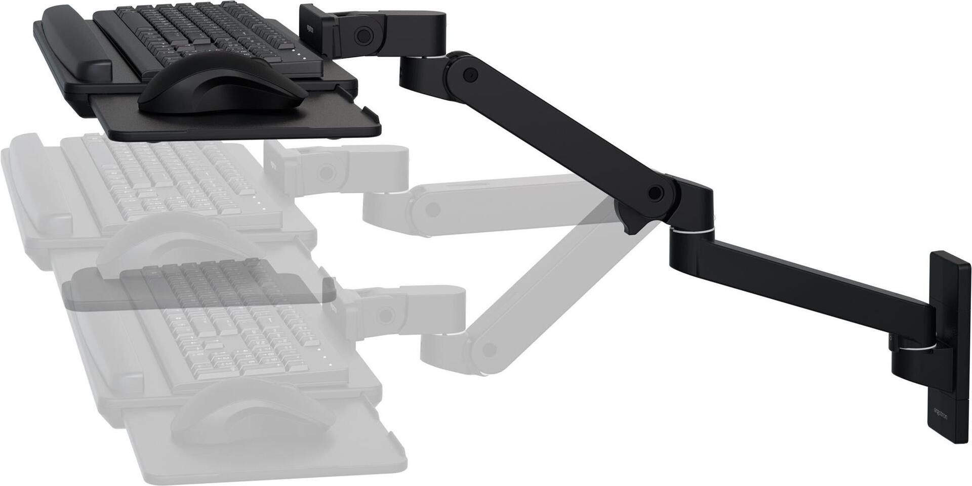 Die Ergotron LX Pro Tastatur-/Mausarmhalterung bietet ein verstellbares Design, das sich ideal zur Optimierung der Ergonomie am Arbeitsplatz eignet. Diese an der Wand montierbare Halterung verfügt über eine robuste Aluminiumkonstruktion, die Langlebigkeit und Stabilität für den täglichen Gebrauch gewährleistet. Das Design ermöglicht eine Neigung um 90° und eine Drehung um 360°, was eine vielseitige Positionierung ermöglicht, um den Komfort und die Effizienz während der Arbeit zu verbessern. Mit einer Hubkraft von 33 cm und einer maximalen Tragkraft von 2,3 kg lässt sich mit dieser Halterung ganz einfach die perfekte, auf individuelle Bedürfnisse zugeschnittene Konfiguration erstellen, die jeden Arbeitsbereich aufwertet.