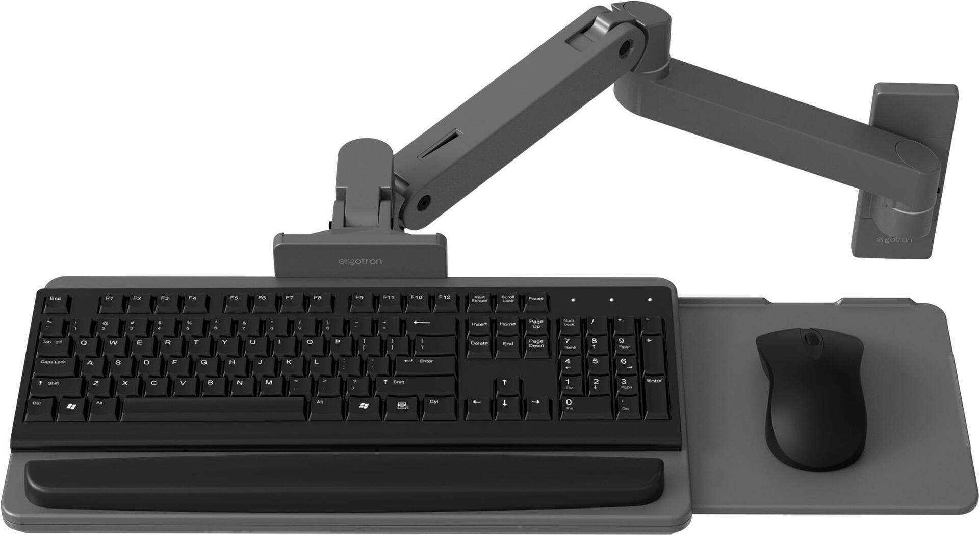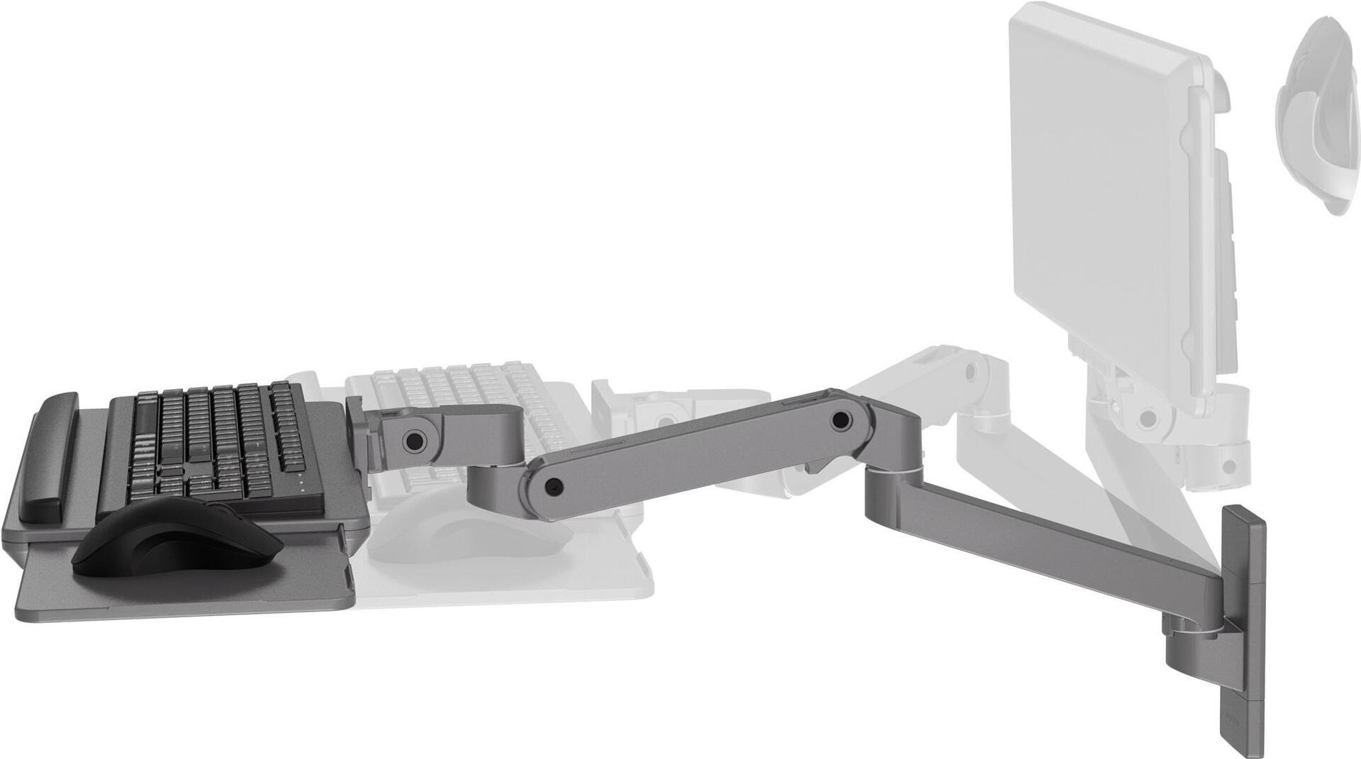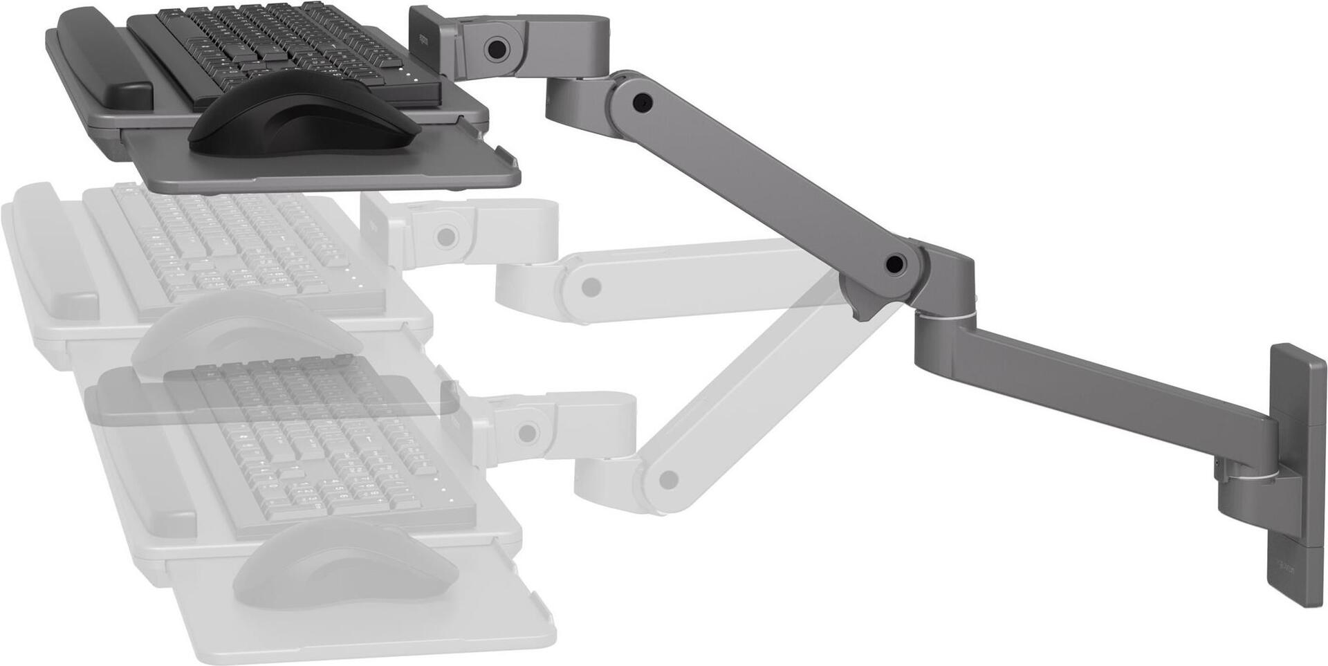 Der Ergotron LX Pro ist eine vielseitige Halterung für Tastatur und Maus, die für mehr Effizienz am Arbeitsplatz entwickelt wurde. Dank ihrer Verstellbarkeit lässt sich diese an der Wand montierbare Halterung individuell anpassen und erfüllt so ganz einfach unterschiedliche Benutzerwünsche und ergonomische Anforderungen. Sie besteht aus strapazierfähigem Aluminium und trägt maximal 2,3 kg, sodass sie für verschiedene Geräte geeignet ist. Genießen Sie die Vorteile der 90°-Neigungs- und 360°-Schwenkverstellung, die einen reibungslosen Übergang zwischen verschiedenen Arbeitswinkeln ermöglichen, und heben Sie Ihre Einrichtung mühelos um 33 cm auf die ideale Höhe. Dieses Produkt wurde für diejenigen entwickelt, die Praktikabilität und Funktionalität in ihren Arbeitsplatzlösungen suchen.