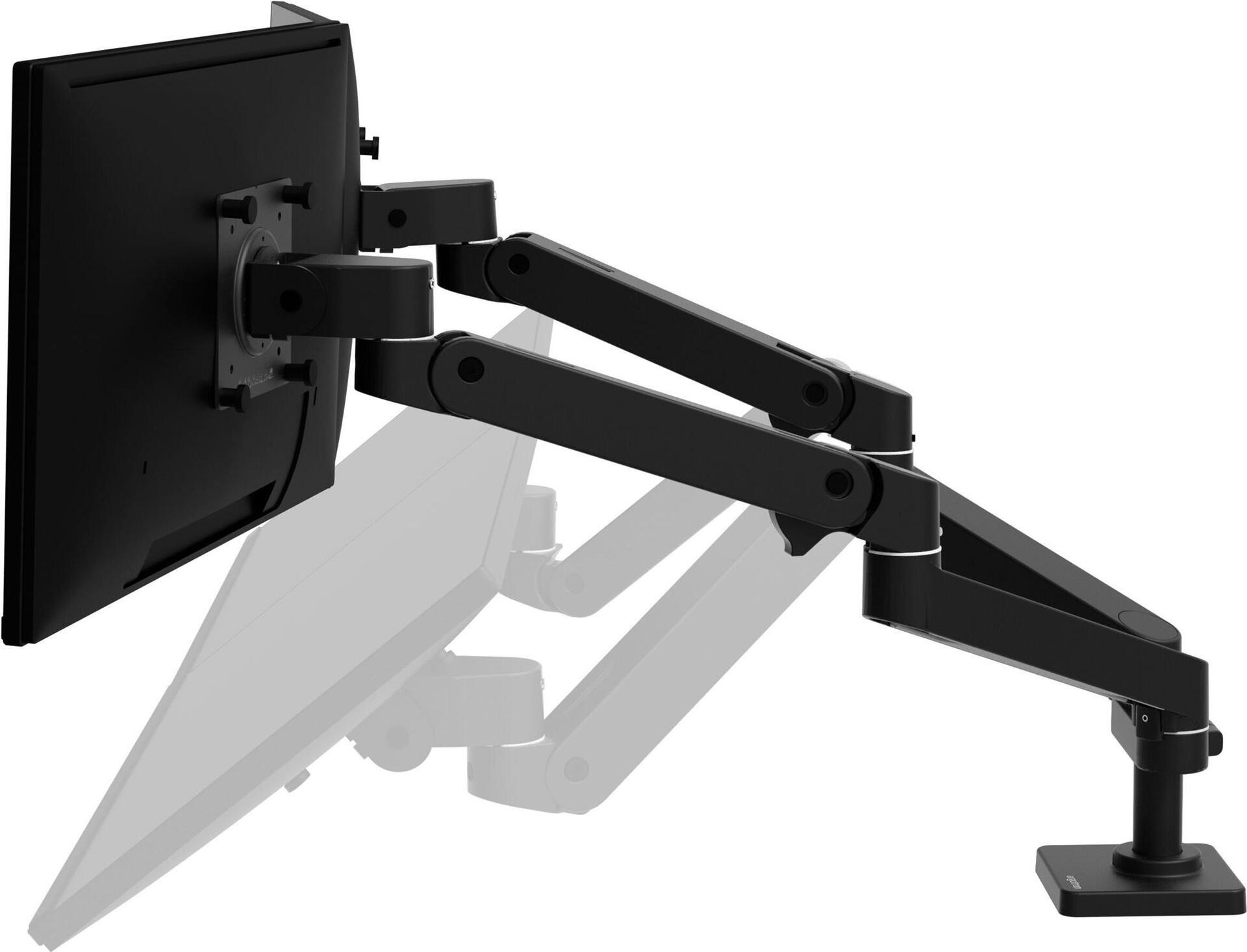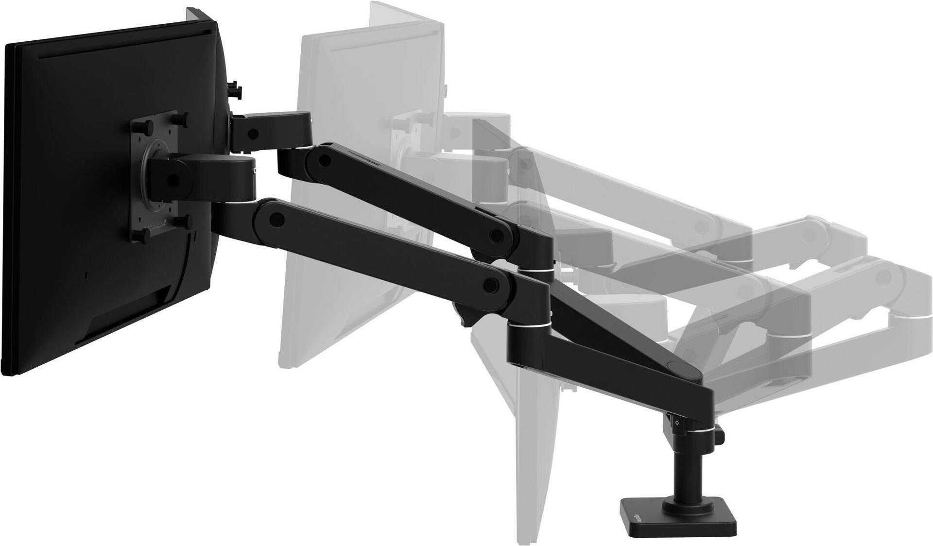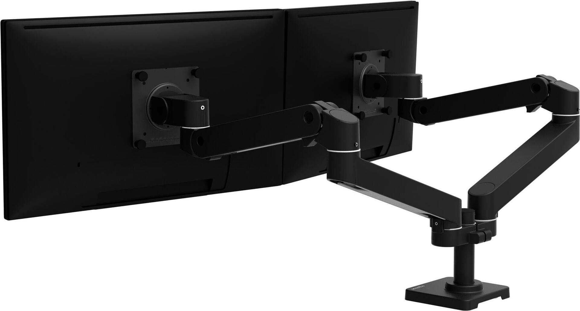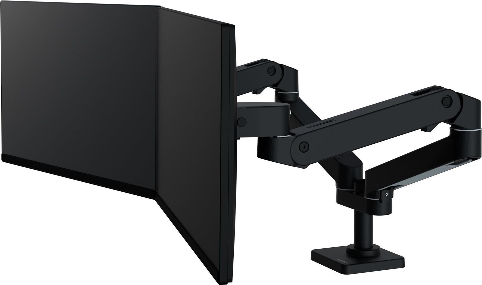 Der Ergotron LX Pro verfügt über ein Doppelarmsystem und ermöglicht Einstellungen, darunter eine Neigung von 85 Grad, eine vollständige 360-Grad-Schwenkeinrichtung und eine 360-Grad-Drehung. Darüber hinaus bietet er einen Hub von 33 cm, sodass Benutzer ihr Seherlebnis mühelos anpassen können. Die Halterung ist für die Montage auf dem Schreibtisch ausgelegt, was die Installation vereinfacht und eine maximale Traglast von 20 kg unterstützt.