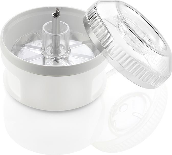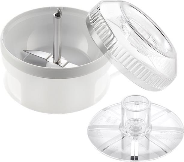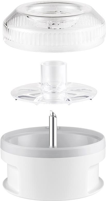 Produkttext[/head]Die ideale Ergänzung zum ESGE-Zauberstab®: der Processor inklusive Pulverscheibe! Im Nu lassen sich trockene Zutaten hacken oder auch fein mahlen. So bekommen Salate, Dips, Saucen oder Dressings ihren würzigen, finalen Kick. Dass alles extra sanft und aromaschonend zerkleinert wird, gewährleistet das fixierte, aber auch entnehmbare zweiflügelige Edelstahlmesser. Ob getrocknete Kräuter oder Gemüse, Hartkäse, Nüsse oder Getreidekörner – im Processor wird alles mühelos zerkleinert. Durch die Pulverscheibe, die zur Ausstattung gehört, können auch kleinste Mengen verarbeitet werden. Für die Prisen schwarzen Pfeffer oder Chiliflocken…Durch den transparenten Deckel hat man den Inhalt immer bestens im Blick und kann so die Feinheit des Mahlgutes perfekt steuern. Soll Erdnussbutter hergestellt werden, sollten die Nüsse sehr fein zerkleinert werden; will man Saaten für das selbstgebackene Körnerbrot zerkleinern, dürfen die ja gerne noch etwas stückiger sein. Aus getrocknetem Brot wird in Sekundenschnelle auf Knopfdruck Paniermehl. Der 200ml-Processor ist schnell und einfach zu reinigen. Er ist auf alle ESGE-Zauberstab®-Modelle abgestimmt bis auf „Gastro“ und „Maître“.[head]Hauptmerkmale