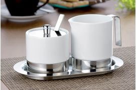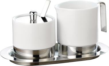 Esmeyer Zucker- und Sahneset "Adam", 5-teilig aus Porzellan und Edelstahl, Set bestehend aus: Sahnegießer (302-024)