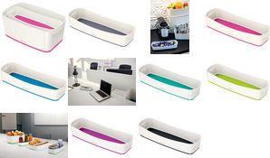 Das modulare Leitz MyBox Aufbewahrungssystem verleiht jedem Büro oder zu Hause das gewisse Etwas. Diese robuste längliche Aufbewahrungsschale besteht aus hochwertigem Material in Hochglanzoptik mit modernem Zweifarbeneffekt. Für den Schreibtisch oder die Schublade. Auch geeignet als Einsatz für die Leitz MyBox Groß oder Klein. Für eine optimale Organisation von Stiften und kleinen Utensilien. Passt perfekt zu den Duo Colour Produkten der Leitz WOW Serie.
