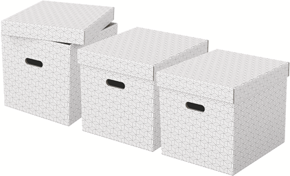 Esselte Aufbewahrungsbox Home Cube, 3er Set, weiß 100% recyclete Wellpappe, mit abnehmbarem Deckel, mit - 1 Stück (628288)