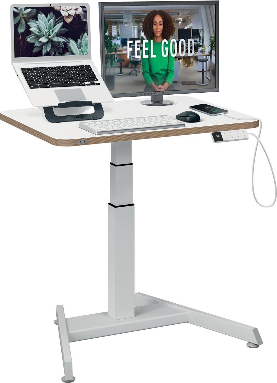 Sitzen - Stehen - Bewegen. Ganz gleich, ob Sie einen gesünderen Lebensstil anstreben oder Schmerzen bei der Arbeit vermeiden möchten, der platzsparende elektrisch höhenverstellbare Sitz-/Steh-Schreibtisch wird Ihren Arbeitsplatz auf das nächste Level bringen. Das kompakte Design mit einer Arbeitsfläche von 80 x 60 cm ist ideal für den flexiblen Einsatz und als temporärer Schreibtisch bei eingeschränkten Platzverhältnissen. Er eignet sich perfekt als kleiner Schreibtisch für das Home-Office oder für Hot Desking-Bereiche in Büros und bietet Platz für einen Monitor, einen Laptop, eine Tastatur und weiteres Zubehör wie z. B. Handgelenkstützen und Mauspads. Kombiniert mit den cleveren Leitz Ergo Pegboard Organizern (separat erhältlich) schaffen Sie vertikalen Stauraum und sorgen für Ordnung auf Ihrem Schreibtisch. Dieser Schreibtisch verfügt über eine stufenlose elektrische Höhenverstellung mit einer intelligenten Aufsteh-Erinnerung und 4 Memory-Funktionen, mit denen Sie die perfekte ergonomische Position finden und speichern können. IGR- und TÜV-zertifiziert. Der einfache Wechsel zwischen Sitzen und Stehen fördert die Muskelbewegung, was einen positiven Einfluss auf das Wohlbefinden haben kann. Einfach zu bedienendes Display mit Kindersicherung, Überhitzungsschutz, USB-C- & USB-A-Anschlüssen, einem Bildschirm zur Anzeige der Tischhöhe, Antikollisionsfunktion und einer Kabelhalterung. Dieser moderne und minimalistische höhenverstellbare Schreibtisch ist ideal für Ihr Zuhause oder Ihr Büro, um den Komfort zu erhöhen und die Produktivität zu maximieren. Wir haben es uns zur Aufgabe gemacht, Lösungen anzubieten, die es jedem ermöglichen, bei der Arbeit und darüber hinaus erfolgreich zu sein und sich wohlzufühlen. Kombinieren Sie den höhenverstellbaren Sitz-/Steh-Schreibtisch mit vielen anderen Leitz Ergo Produkten, um einen flexiblen Arbeitsplatz zu gestalten, der Ihnen den regelmäßigen Wechsel zwischen Sitzen, Stehen und Bewegen ermöglicht. Bleiben Sie aktiv - FEEL GOOD mit Leitz.