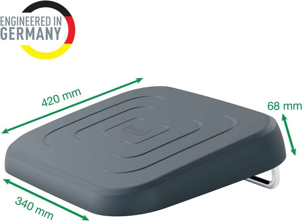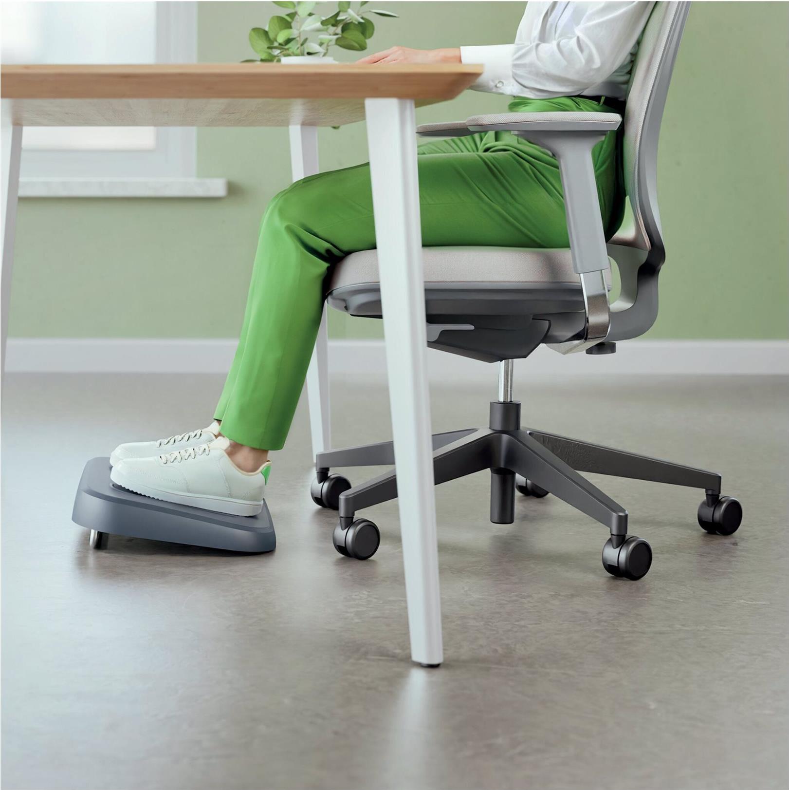 Verbessern Sie Ihren ergonomischen Komfort und reduzieren Sie Ihre Auswirkungen auf die Umwelt mit der ergonomischen, verstellbaren Leitz Ergo Schreibtisch-Fußstütze. Passen Sie die Fußablage mit drei Höheneinstellungen ganz einfach an Ihre individuelle Körpergröße an. Schaffen Sie einen bequemen Arbeitsplatz, indem Sie Ihre Haltung verbessern und Ihre Hüfte sowie Ihren unteren Rücken unterstützen. Reduzieren Sie Schmerzen und legen Sie während der Arbeit die Füße hoch, um Ihre Haltung und Durchblutung zu verbessern. Das ergonomische Design entspannt Ihre Füße und Beine, um das Energieniveau zu steigern und Ermüdung vorzubeugen, wenn Sie über einen längeren Zeitraum an Ihrem Schreibtisch arbeiten. Die strukturierte Oberfläche hält Ihre Füße an Ort und Stelle und sorgt so für Stabilität. Sie kann mit Socken, barfuß oder mit Schuhen verwendet werden. Gummischutzpolster an der Unterseite der Fußstütze verhindern ein Verrutschen und schützen Ihren Boden. Diese moderne und minimalistische Fußstütze wurde in Deutschland entwickelt und ist ideal für Ihr Home-Office oder im Büro, um den Komfort zu erhöhen und die Produktivität zu maximieren. Diese Fußstütze besteht zu 80 % aus recyceltem Kunststoff, ist zu 100 % recycelbar und wird in einer plastikfreien Verpackung geliefert. Wir haben es uns zur Aufgabe gemacht, Lösungen anzubieten, die es jedem ermöglichen, bei der Arbeit und darüber hinaus erfolgreich zu sein und sich wohl zu fühlen. Kombinieren Sie die Fußstütze mit vielen anderen Leitz Ergo Produkten, um einen flexiblen Arbeitsplatz zu gestalten, der Ihnen den regelmäßigen Wechsel zwischen Sitzen, Stehen und Bewegen ermöglicht. Bleiben Sie aktiv - FEEL GOOD mit Leitz.