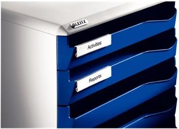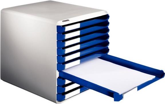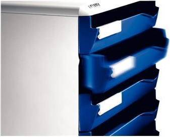 • Esselte-Leitz LEITZ Schubladenbox Post-Set, 5 Schübe, lichtgrau/blau für Format DIN A4, Schubladen mit Auszugsstopp, auto - 1 Stück (5280-00-35) (geöffnet)