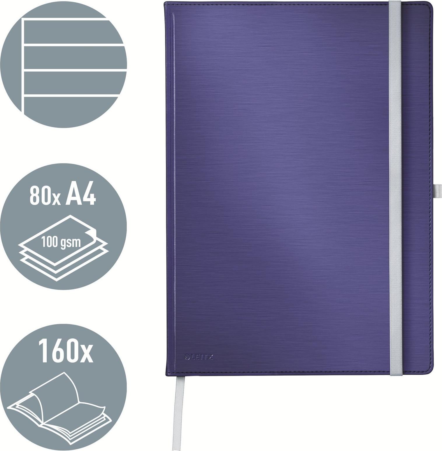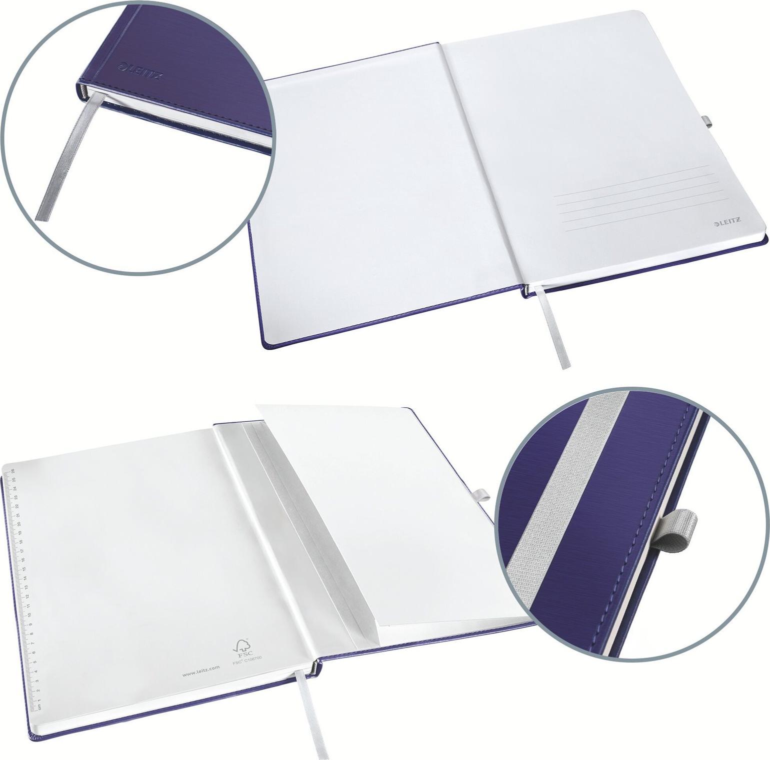Klassisches, hochwertiges Notizbuch mit Hardcover in moderner, weich gebürsteter Oberflächenveredelung und eleganter Farbe. Stiftschlaufe, Gummibandverschluss und eine Falttasche auf der Rückseite des Umschlags machen die Notizbücher noch praktischer.