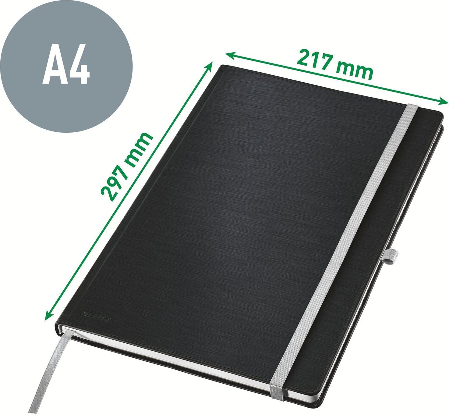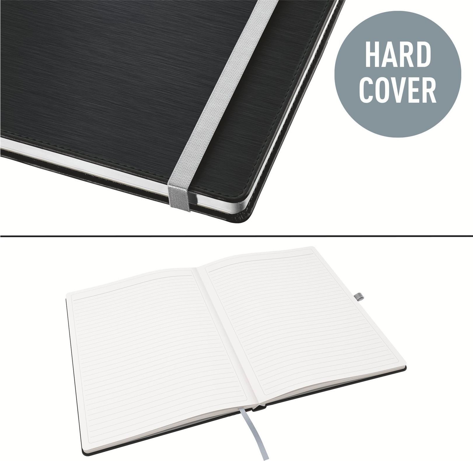 Klassisches, hochwertiges Notizbuch mit Hardcover in moderner, weich gebürsteter Oberflächenveredelung und eleganter Farbe. Stiftschlaufe, Gummibandverschluss und eine Falttasche auf der Rückseite des Umschlags machen die Notizbücher noch praktischer.