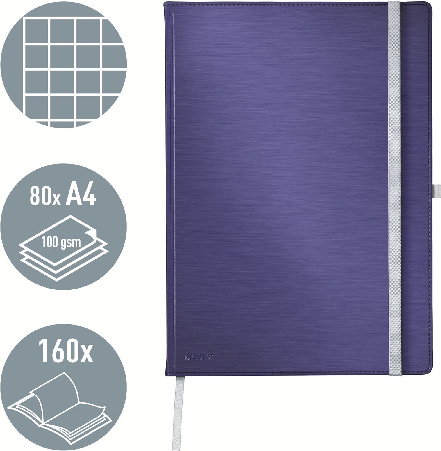 Klassisches, hochwertiges Notizbuch mit Hardcover in moderner, weich gebürsteter Oberflächenveredelung und eleganter Farbe. Stiftschlaufe, Gummibandverschluss und eine Falttasche auf der Rückseite des Umschlags machen die Notizbücher noch praktischer.