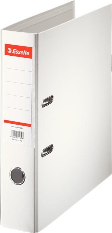 Esselte Plastik-Ordner Standard, DIN A4, 75 mm, weiß Einband innen und außen mit PP-Folie kaschiert, mit Hebelmechanik, mit Griffloch und Schlitzen, ohne Kanten- schutz, auswechselbares Rückenschild (158 mm), zu 70% ...
