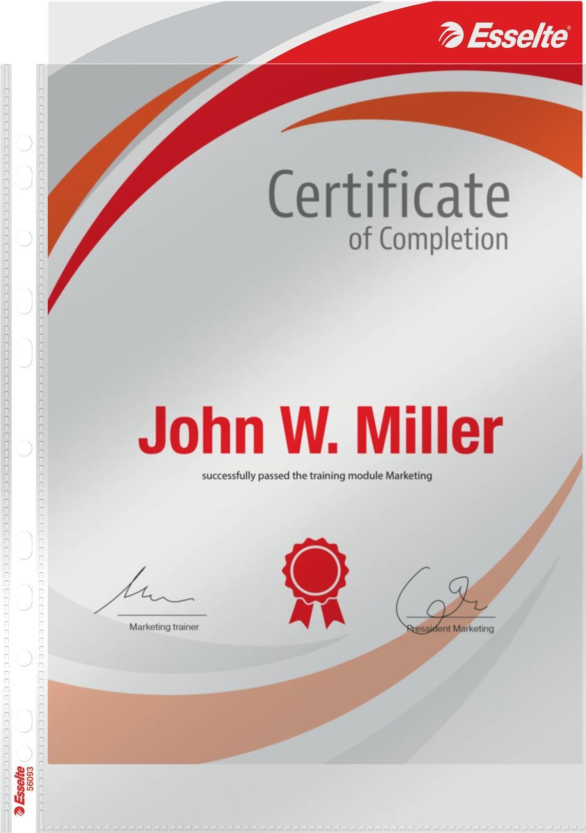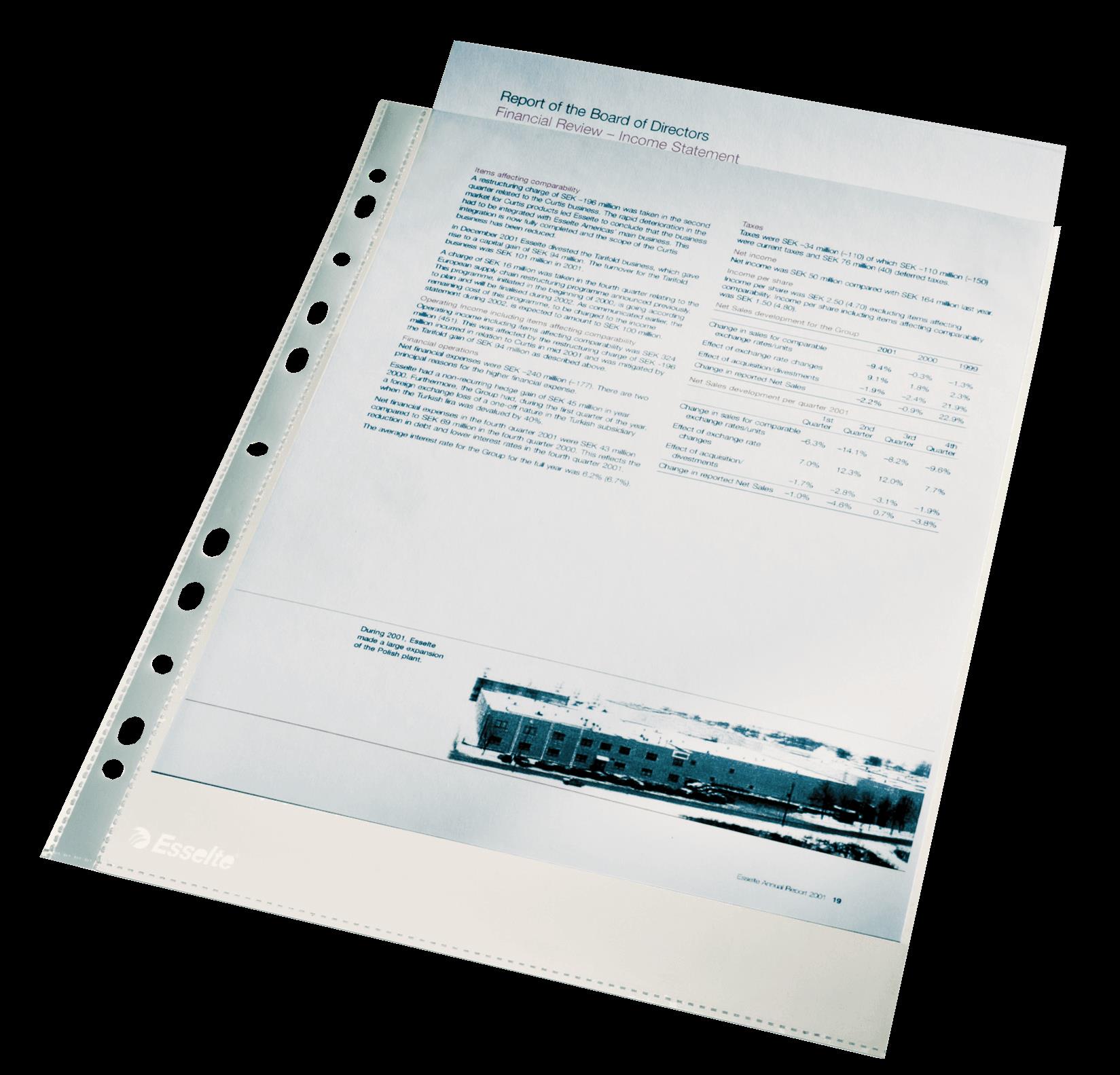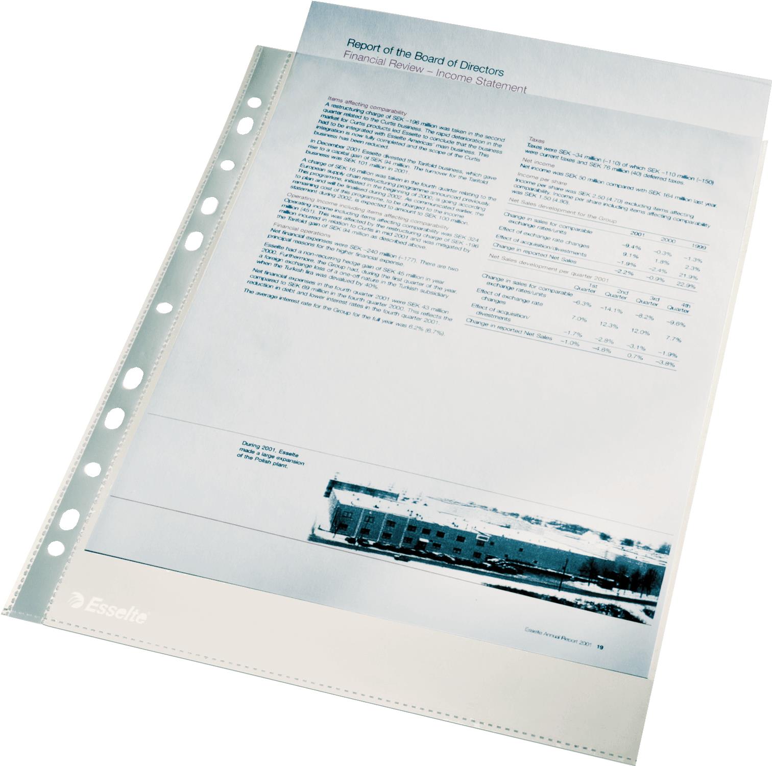 Esselte Prospekthülle Premium, A4, PP, glasklar, 0,10 mm oben offen, dokumentenecht, Eurolochung, verstärkter - 1 Stück (56093)