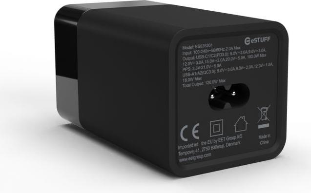 | Produktbeschreibung | eSTUFF Netzteil - GaN - 2 x USB-C, 2 x 9-polige USB Typ A - 120 Watt |