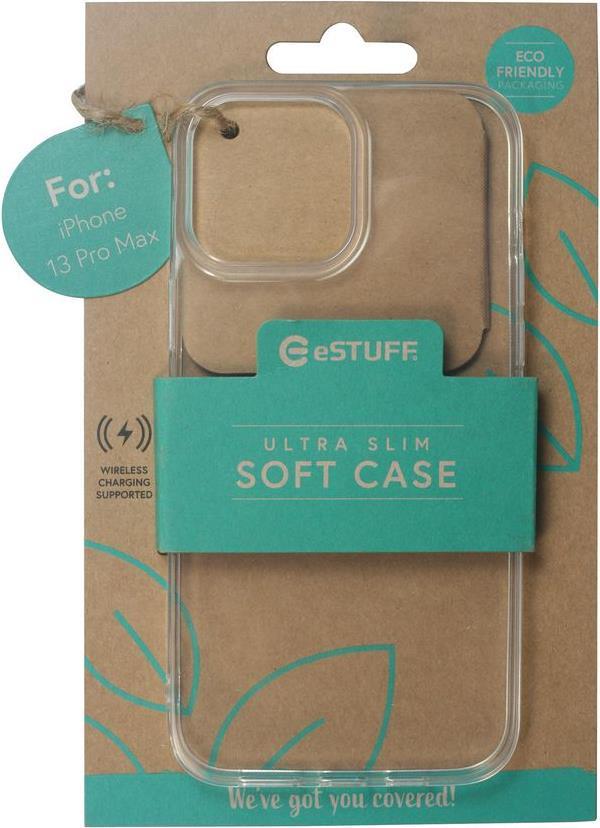 eSTUFF - Hintere Abdeckung für Mobiltelefon - Thermoplastisches Polyurethan (TPU) - klar - für Apple iPhone 13 Pro Max