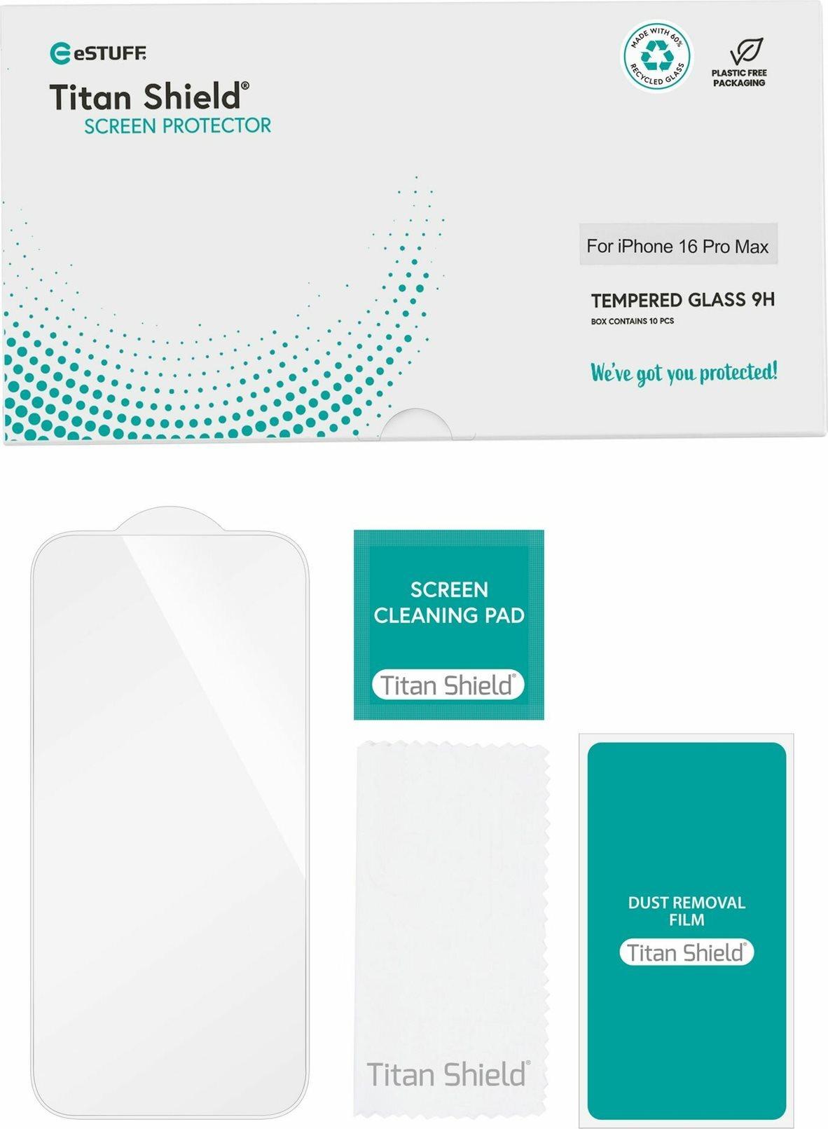 eSTUFF Titan Shield Infinite - Bildschirmschutz für Handy - Glas - klar (Packung mit 10) - für Apple iPhone 16 Pro Max (ES501426-10BULK)