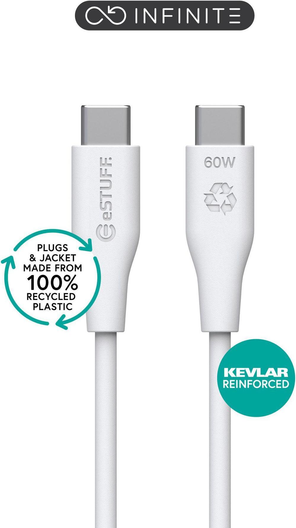 eSTUFF INFINITE - USB-Kabel - 24 pin USB-C (M) gerade zu 24 pin USB-C (M) gerade - USB2.0 - 1,0m - USB Power Delivery (60W), 100 % recycelter Kunststoff - weiß (ES604170)