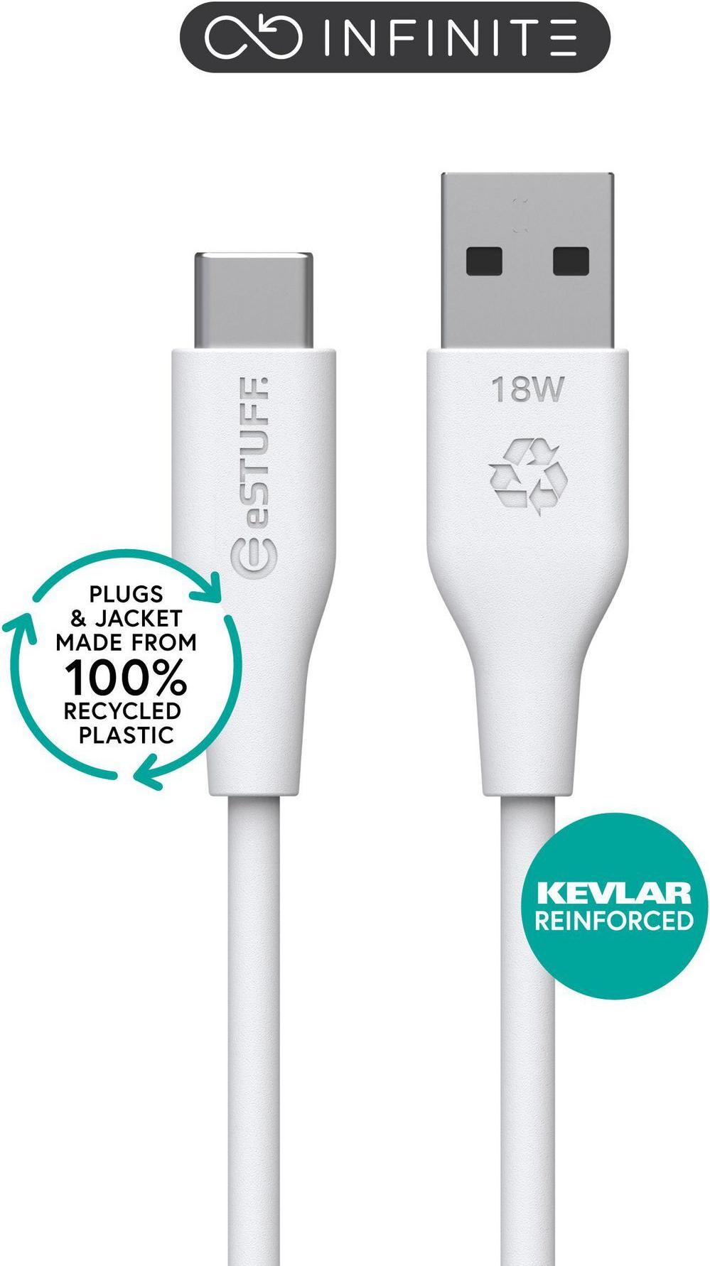 eSTUFF Ladekabel USB C auf USB A, 2m, Weiß 100% recyceltes Plastik, Super Soft (ES605270)