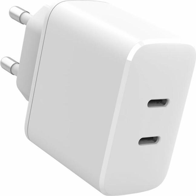 eSTUFF INFINITE - Netzteil - 100 % recycelter Kunststoff - 35 Watt - 3 A - Apple Fast Charge, PD 3,0, Quick Charge 3.0 - 2 Ausgabeanschlussstellen (24 pin USB-C) - weiß (ES637035)