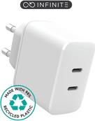 eSTUFF INFINITE - Netzteil - 100 % recycelter Kunststoff - 35 Watt - 3 A - Apple Fast Charge, PD 3,0, Quick Charge 3.0 - 2 Ausgabeanschlussstellen (24 pin USB-C) - weiß (ES637035-BULK)