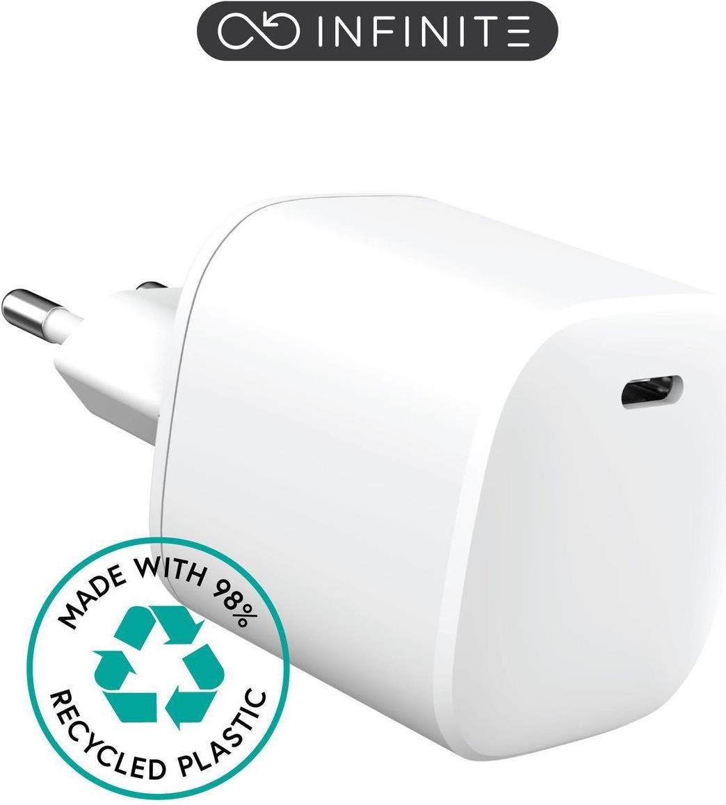 eSTUFF INFINITE - Netzteil - GaN, 100 % recycelter Kunststoff - 45 Watt - 3 A - Apple Fast Charge, PD 3,0, QC 3.0 (24 pin USB-C) - weiß (ES637045)