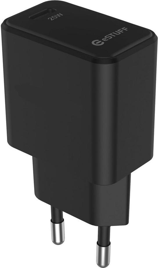 • eSTUFF USB-C Charger EU PD 20W. 1 x USB-C. Black (ES635029-BULK)