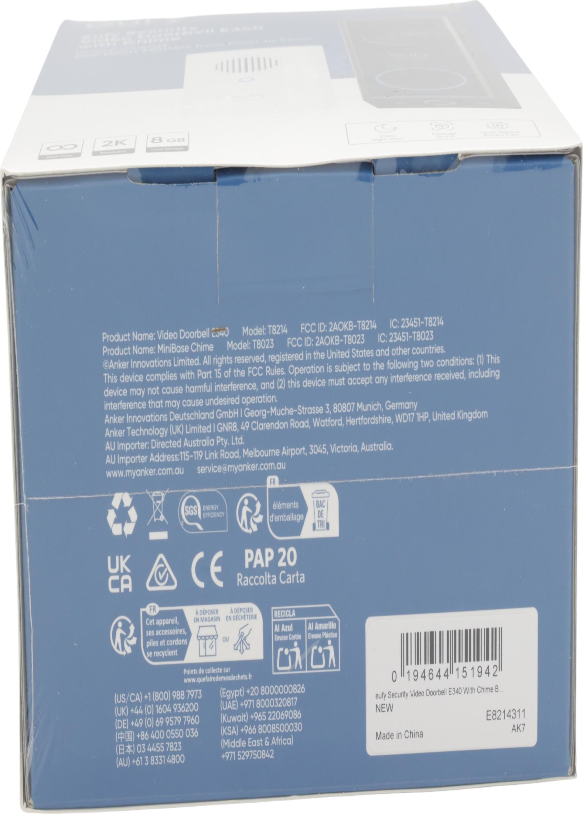 Anker Eufy Video Doorbell 2K - Smarte Türklingel mit Glocke - mit Kamera - kabellos - Schwarz - mit Edge HomeBase Mini (E8214311)