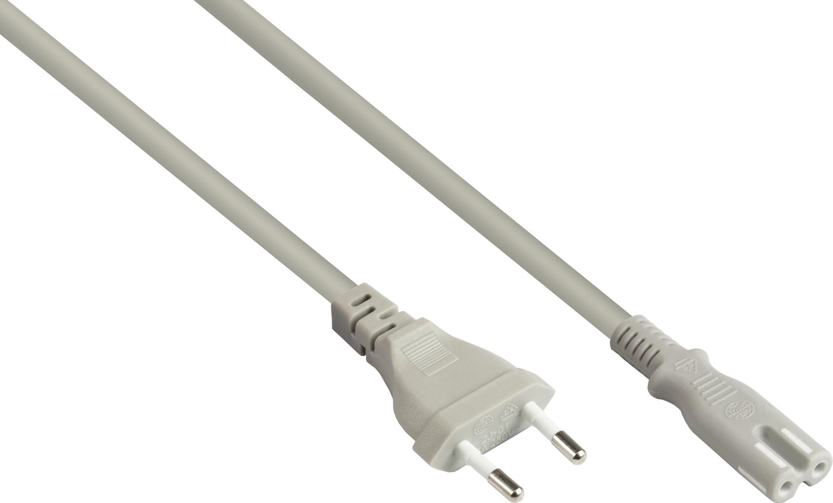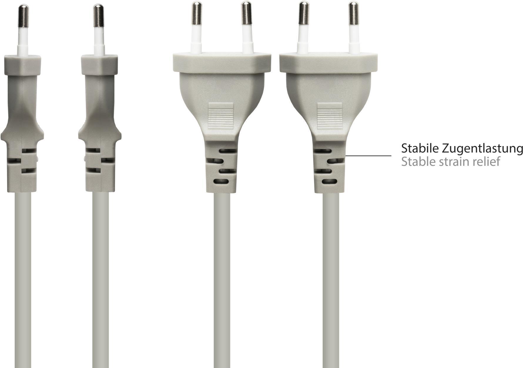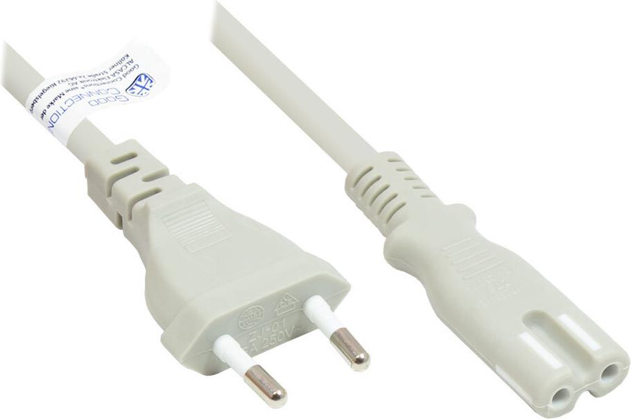 Euro-Netzkabel Euro-Stecker Typ C (gerade) an C7/Euro 8 Buchse (gerade), grau, 0,75 mm², 5 m, Good Connections®