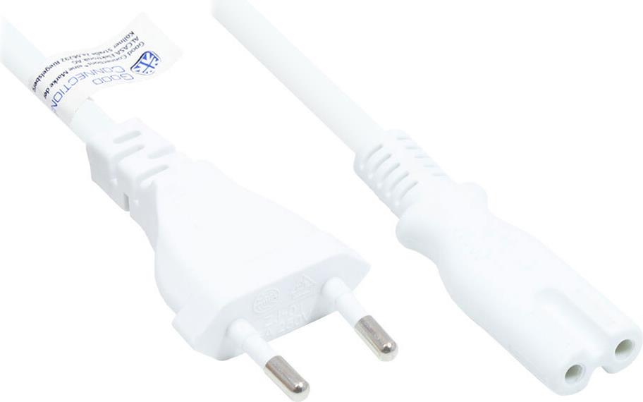 Euro-Netzkabel Euro-Stecker Typ C (gerade) an C7/Euro 8 Buchse (gerade), weiß, 0,75 mm², 1,8 m, Good ...