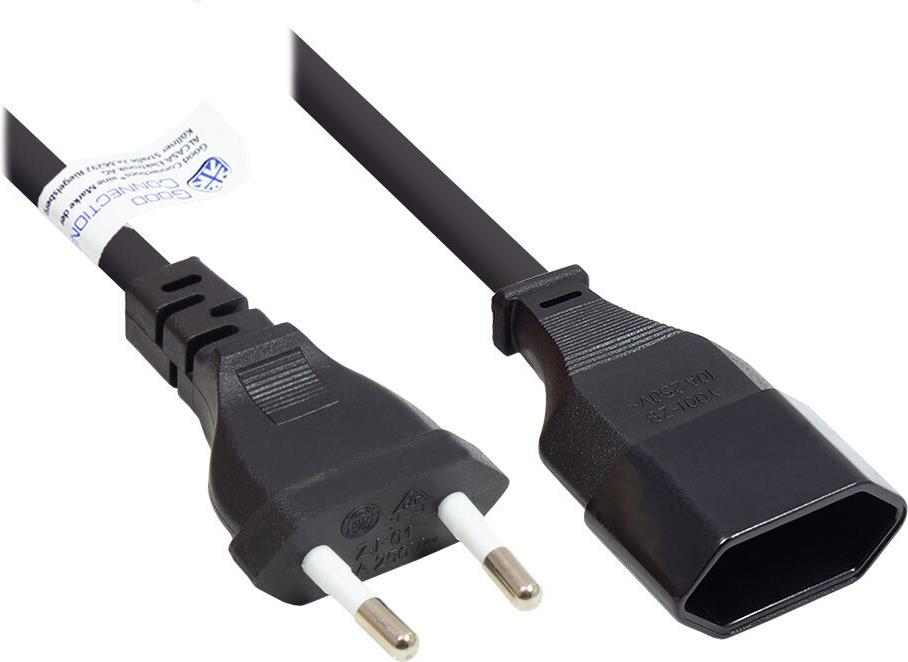 Euro-Verlängerung Euro-Stecker Typ C (gerade) an Euro-Buchse (gerade), schwarz, 0,75 mm², 0,2 m, Good Connections®