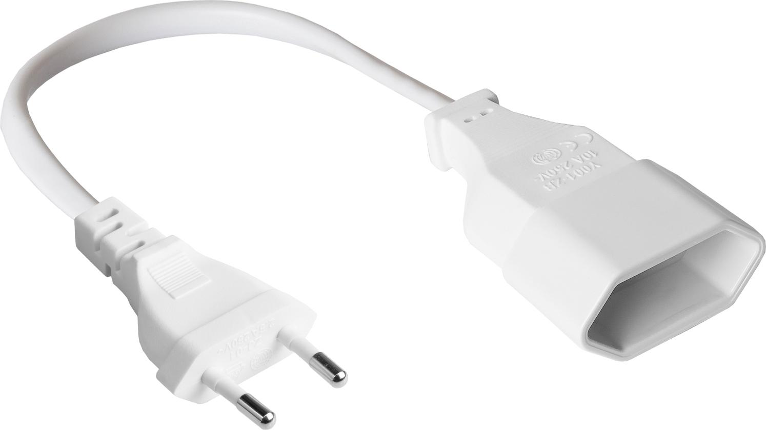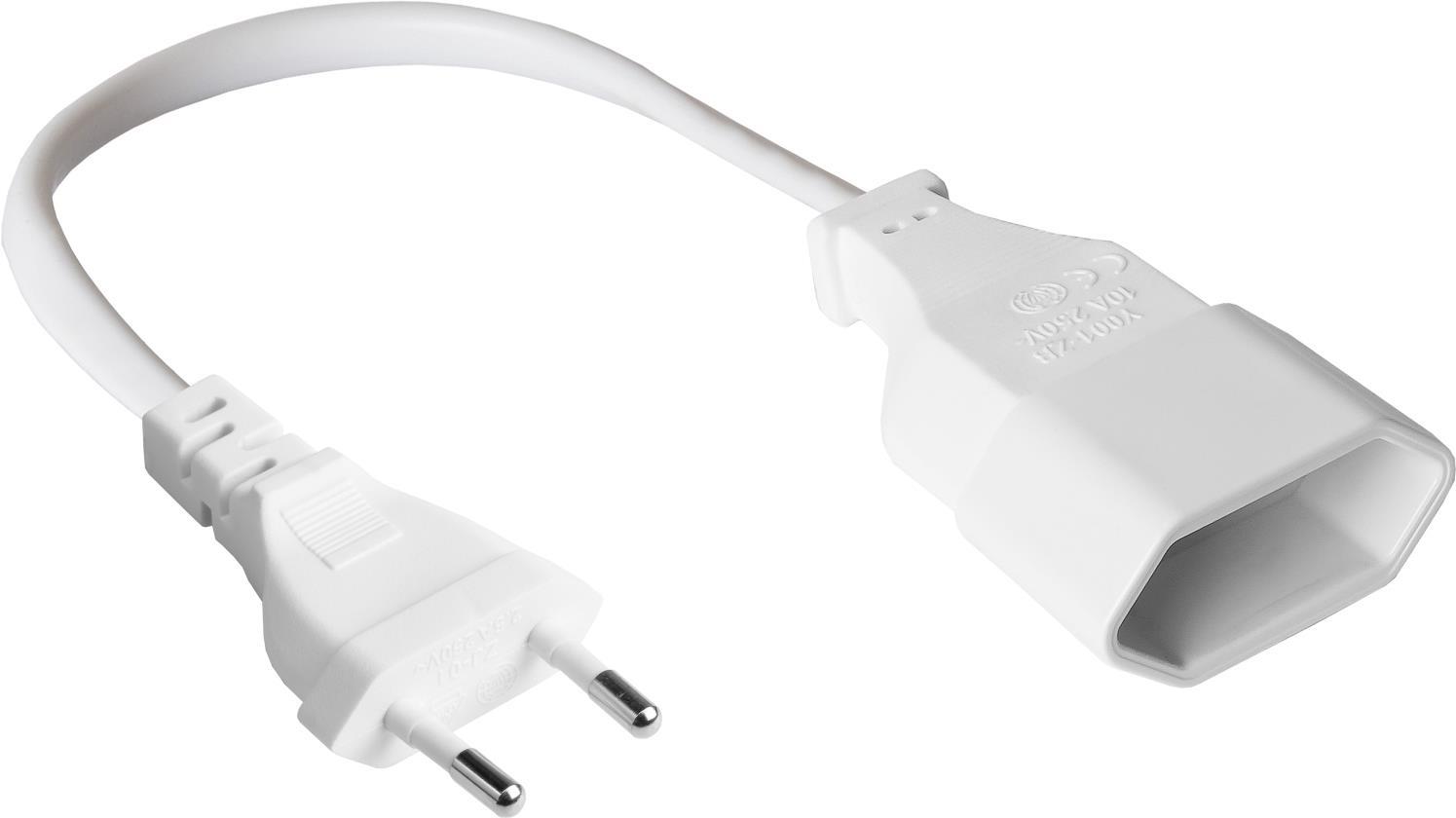Euro-Verlängerung Euro-Stecker Typ C (gerade) an Euro-Buchse (gerade), weiß, 0,75 mm ², 0,2 m, Good C (P0300-W002)