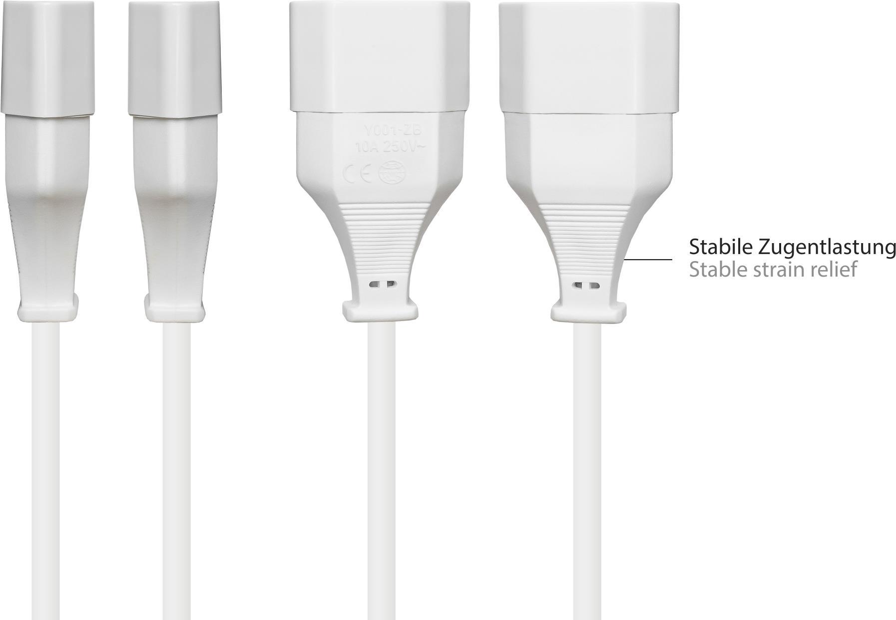 Euro-Verlängerung Euro-Stecker Typ C (gerade) an Euro-Buchse (gerade), weiß, 0,75 mm ², 1m, Good Conn (P0300-W010)