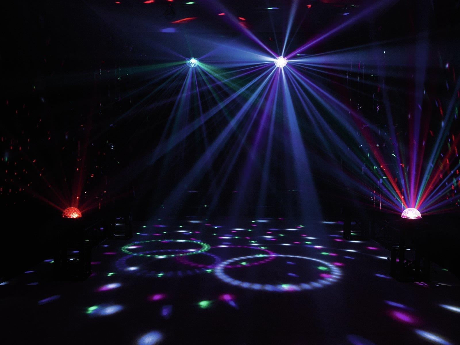 EUROLITE LED BC-4 StrahleneffektkugelKlare, facettierte Oberfläche sorgt für einzigartige StrahleneffekteAusgestattet mit sechs 1-W-LEDs in den Farben Rot, Orange, Blau, Weiß, Grün, Violett20 Umdrehungen (180°) pro Minute sorgen für kreisf