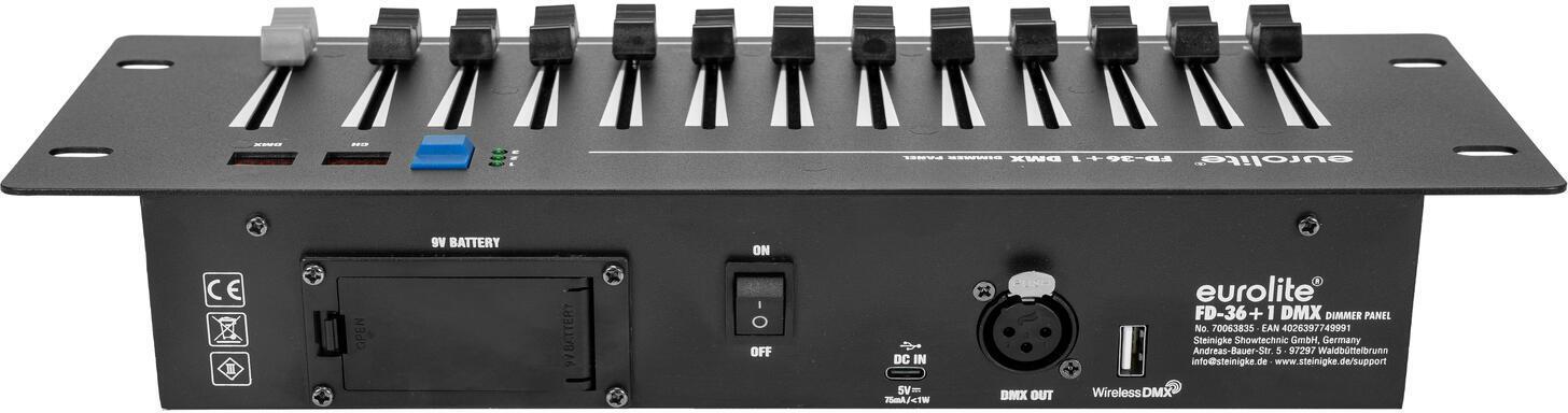 1 x EUROLITE FD-36+1 DMX Dimmer Panel, 1 x 9-V-Netzteil, Bedienungsanleitung |
