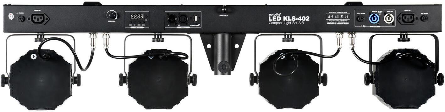 | Steuerungsarten | Stand-alone; Sound-to-Light (Mikrofon); Master/Slave; DMX; QuickDMX (USB); W-DMX/CRMX (USB optional); AirW wireless Master/Slave; Funkfernbedienung; optional Funkfußschalter |