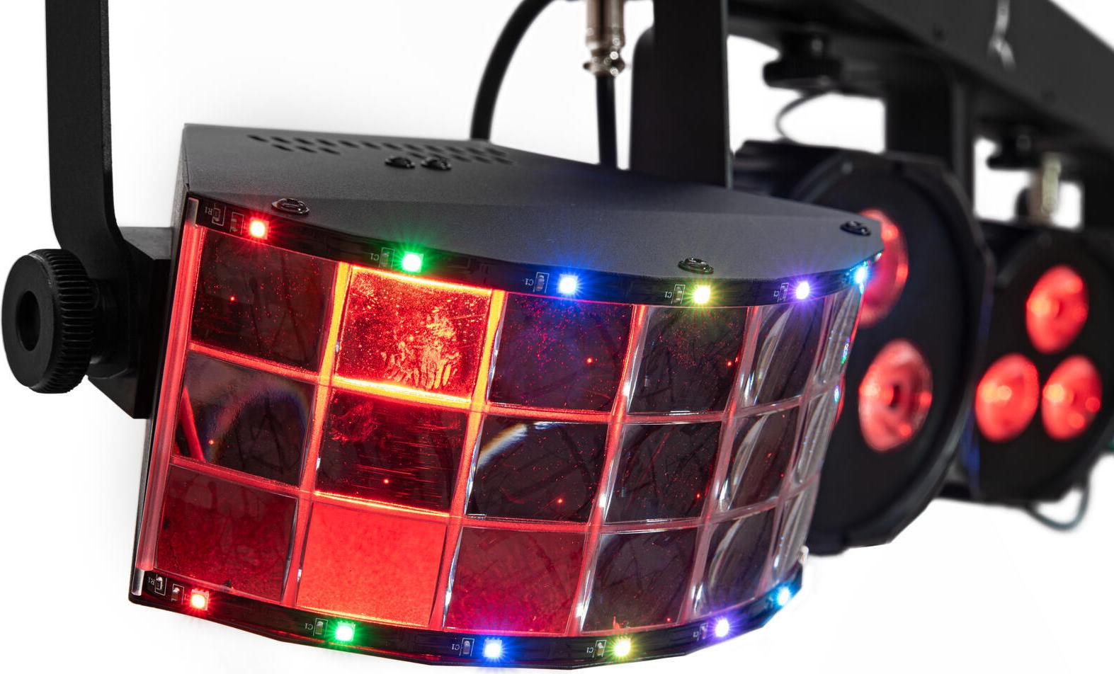 | Bedienelemente | Stand-alone, DMX, AirW, Sound-to-Light (Mikrofon), Master/Slave, Funkfernbedienung |