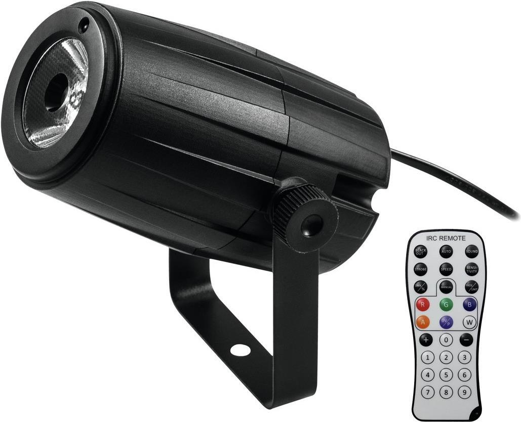 EUROLITE LED PST-5 QCL PinspotAusgestattet mit einer 5-W-4in1-LED in den Farben Rot, Grün, Blau und WeißBequeme Fernsteuerung per mitgelieferter IR-Fernbedienung EUROLITE IR-72 integrierte Showprogramme im Auto- und MusikmodusMontagebü