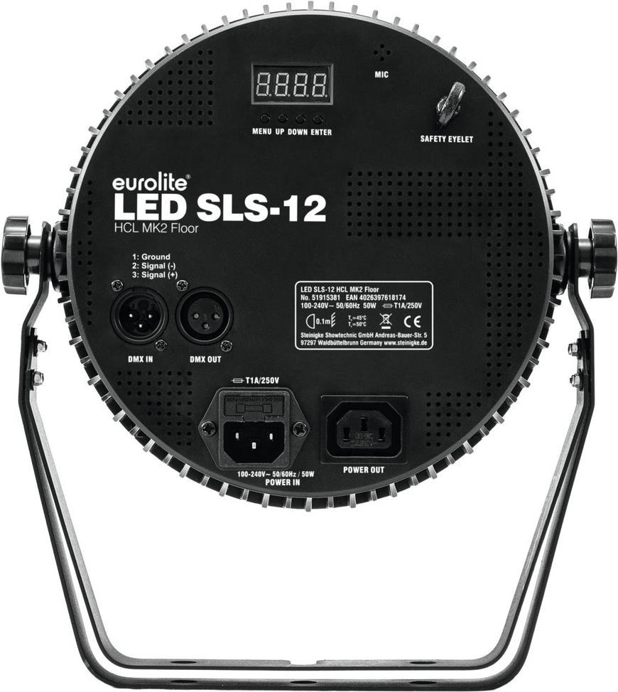 Eurolite LED SLS-12 HCL MK2 FloorAuto-, Musik-, Master/Slave- und DMX-ModusIntegrierte Showprogramme im Auto- und MusikmodusDirekte Farbwahl für 19 Farben2, 3, 4, 6 oder 10 DMX-Kanäle wählbarTechnische Daten: Anzahl
