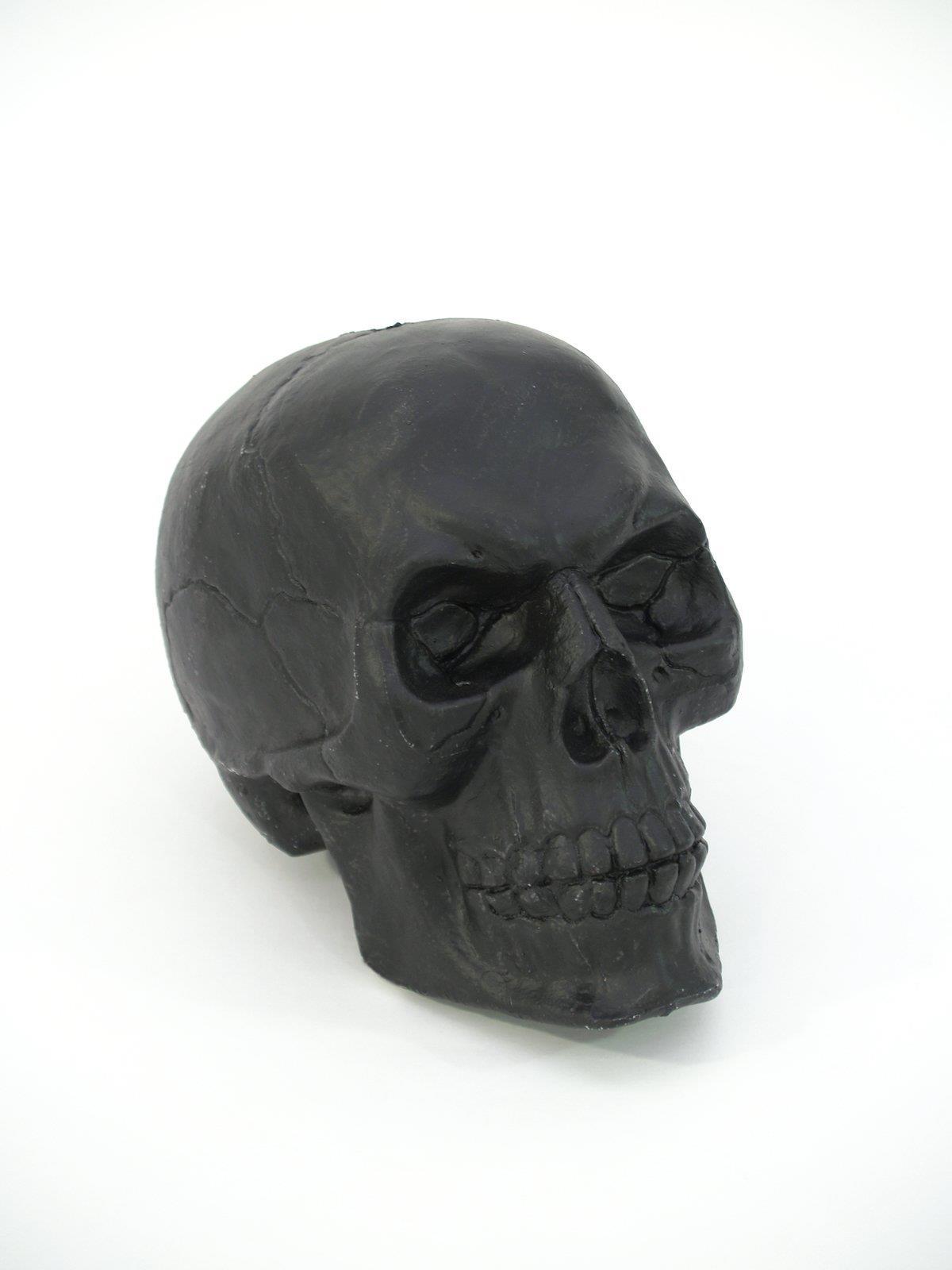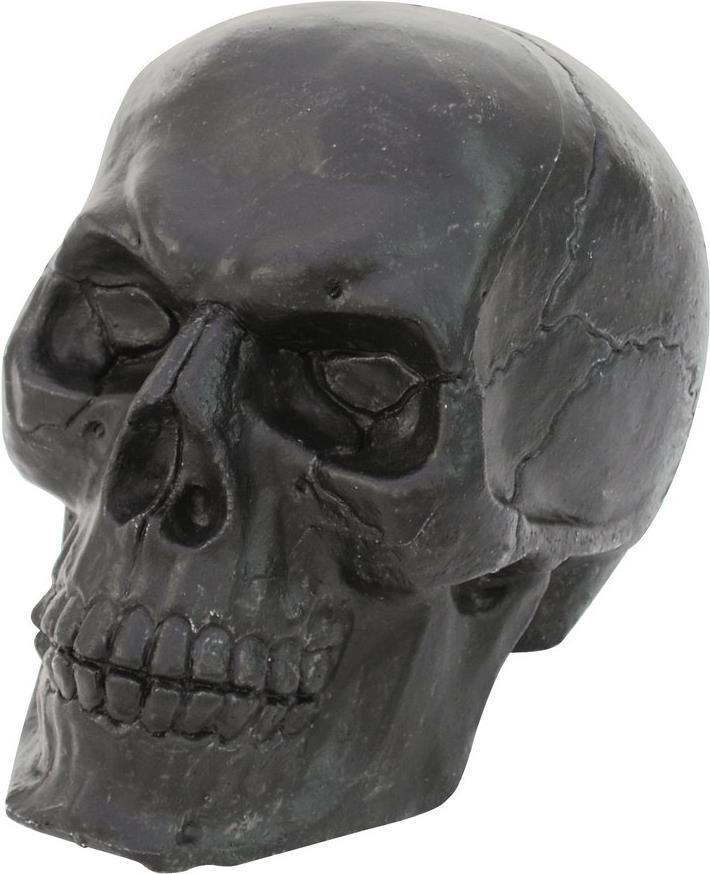 Totenschädel, schwarzDa liegt ein Schädel!Da liegt ein Schädel ! Super Schocker auf Partys oder an Halloween. KunststoffFarbe: SchwarzHöhe 16 cm.