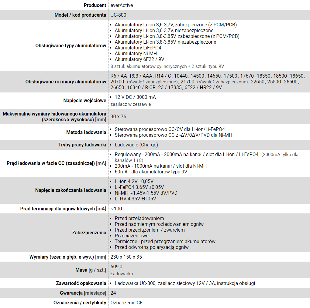 Everactive UC-800 - Lithium-Eisen-Phosphat (LiFePO4) - Lithium Polymer (LiPo) - Nickel-Metallhydrid (NiMH) - Batterieentladung - Überlast - Überhitzung - 9V - AA - AAA - C - SC (UC800)