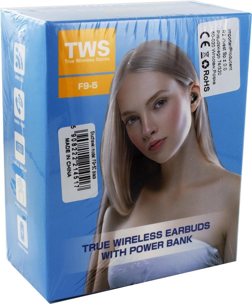 F9+ -5c - True Wireless Kopfhörer 5.1 mit Power Bank - Schwarz - Bluetooth - Knopf im Ohr (CY122655)