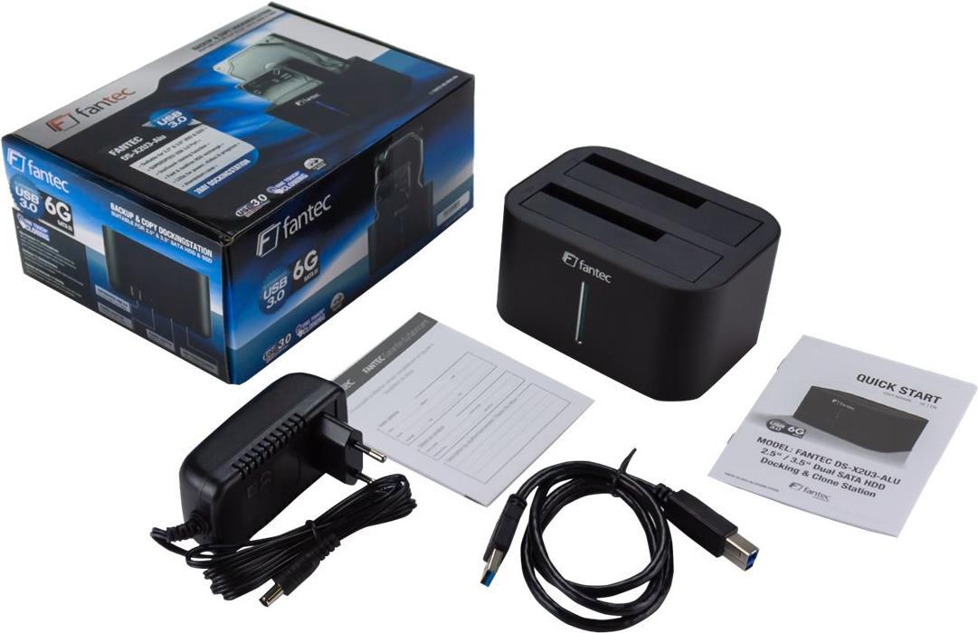 FANTEC DS-X2U3-Alu - Bis zu 2x 6,35cm 2.5" und/oder Bis zu 8,89cm 2x 3.5" SATA HDD Klon & Dockingstation (2492)