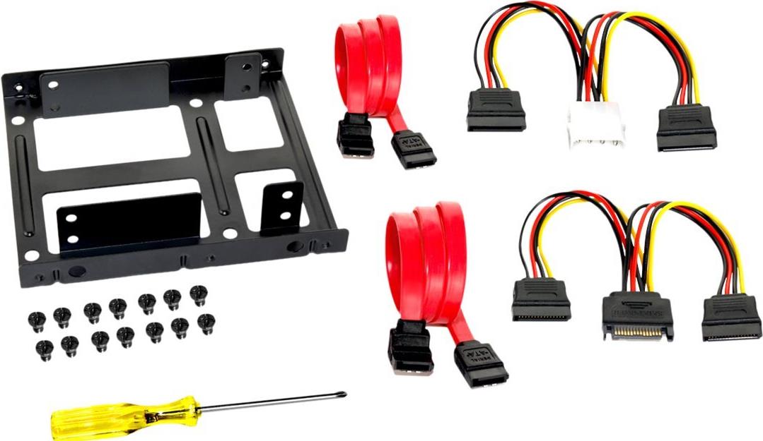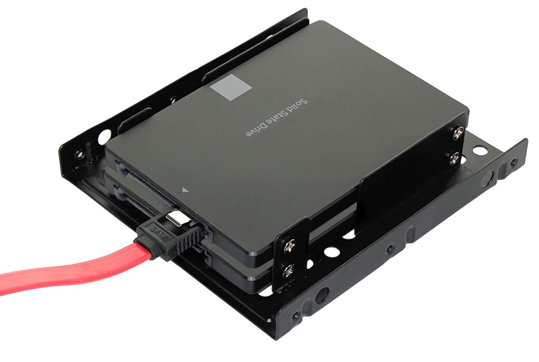 Der FANTEC Einbaurahmen bietet Ihnen die Möglichkeit zwei 2,5 Zoll HDDs oder zwei SSDs platzsparend, übereinander in einem 3,5 Zoll internen Festplattenrahmen zu verbauen.