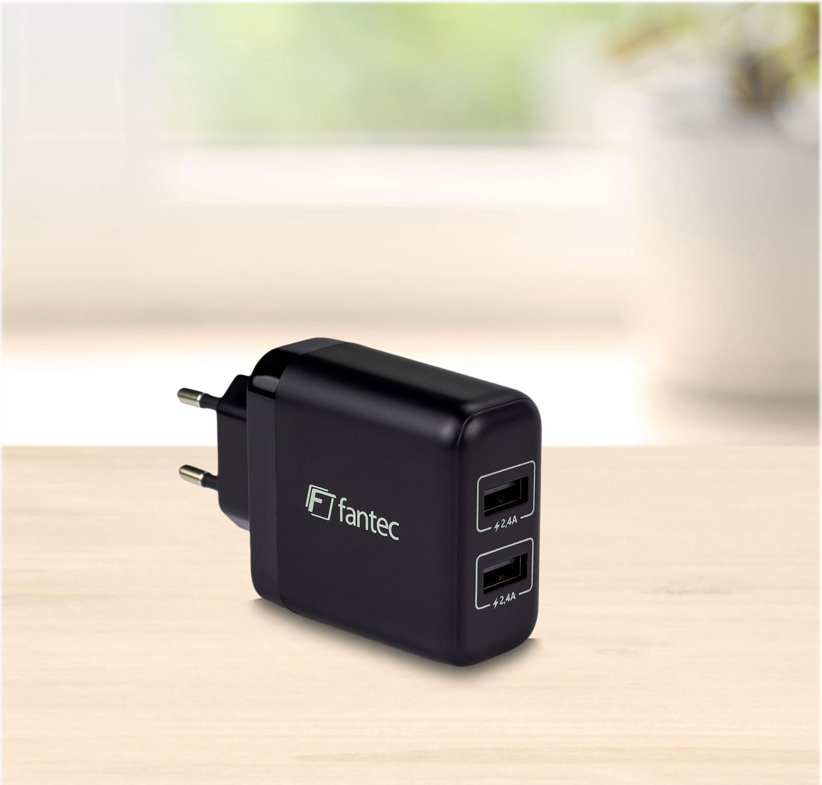 FANTEC SC-A224 - Netzteil - 24 Watt - 4.8 A - QC - 2 Ausgabeanschlussstellen (USB)