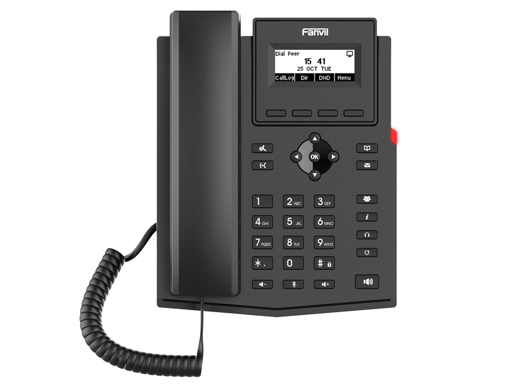Das Fanvil X301G VoIP-Telefon wurde entwickelt, um die Anforderungen dynamischer Geschäftsumgebungen zu erfüllen und bietet eine Mischung aus Leistung und Funktionalität. Sein 2,3-Zoll-Monochrom-Display mit Hintergrundbeleuchtung gewährleistet eine klare Sichtbarkeit von Anruferinformationen und Menüs, während die Unterstützung von 2 Leitungen mit 4 programmierbaren Tasten die Effizienz des Anrufmanagements verbessert. Dank HD-Audio, Rauschunterdrückung und Echounterdrückung zeichnet sich das Gerät durch eine hervorragende Klangqualität aus. Die robuste Konnektivität mit integriertem Ethernet-Switch und Unterstützung für mehrere VoIP-Protokolle gewährleistet eine nahtlose Integration in bestehende Netzwerke. Darüber hinaus ist das Fanvil X301G mit Power-over-Ethernet (PoE)-Unterstützung ausgestattet, wodurch der Bedarf an zusätzlichen Netzteilen reduziert und die Installation vereinfacht wird. Mit seinen umfassenden Anrufverwaltungsfunktionen, fortschrittlichen Sicherheitsprotokollen und flexiblen Platzierungsoptionen ist der Fanvil X301G die ideale Wahl für Unternehmen, die ihre Kommunikationssysteme optimieren möchten.
