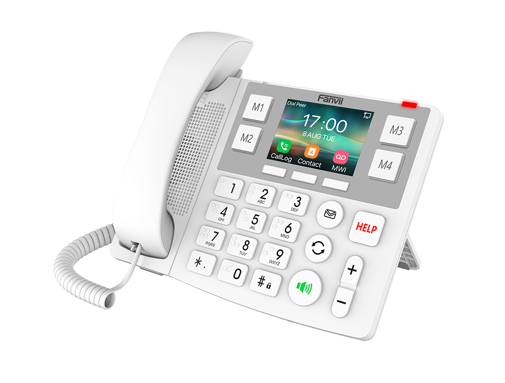 Das Fanvil X305 verfügt über ein 3,5-Zoll-LCD-Display, das mit einer Auflösung von 320 x 240 Pixeln eine klare Darstellung bietet. Es verfügt über ein Farbdisplay und eine Hintergrundbeleuchtung, um die Lesbarkeit unter verschiedenen Lichtverhältnissen zu gewährleisten. Ausgestattet mit einer Freisprecheinrichtung und einer Lautstärkeregelung verbessert dieses VoIP-Telefon die Kommunikation auf einfache Weise. Das Gerät unterstützt Power over Ethernet (PoE), was eine einfachere Einrichtung ohne zusätzliche Stromquellen ermöglicht. Mit vier programmierbaren Tasten bietet es anpassbare Funktionen zur Optimierung der Abläufe in jeder Umgebung. Das X305 eignet sich sowohl für die Wandmontage als auch für den Einsatz auf dem Schreibtisch und ist somit vielseitig für verschiedene Arbeitsbereiche einsetzbar. Es verfügt über zwei Ethernet-Anschlüsse und unterstützt fortschrittliche Sprachcodecs wie G.722 und Opus für hochwertige Audioqualität. Mit zusätzlichen Funktionen wie einer Braille-Tastatur richtet es sich an ein breiteres Publikum und gewährleistet Barrierefreiheit für alle Benutzer. Die doppelten Anschlussarten für Netzwerk und Handapparatbuchse verbessern die Anpassungsfähigkeit zusätzlich und machen das Fanvil X305 zu einer Option für moderne Kommunikationsanforderungen.
